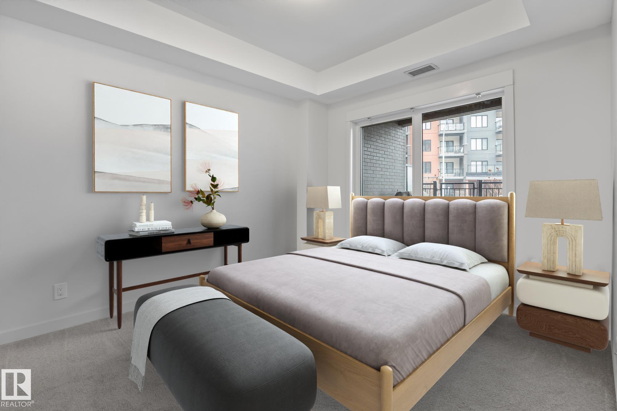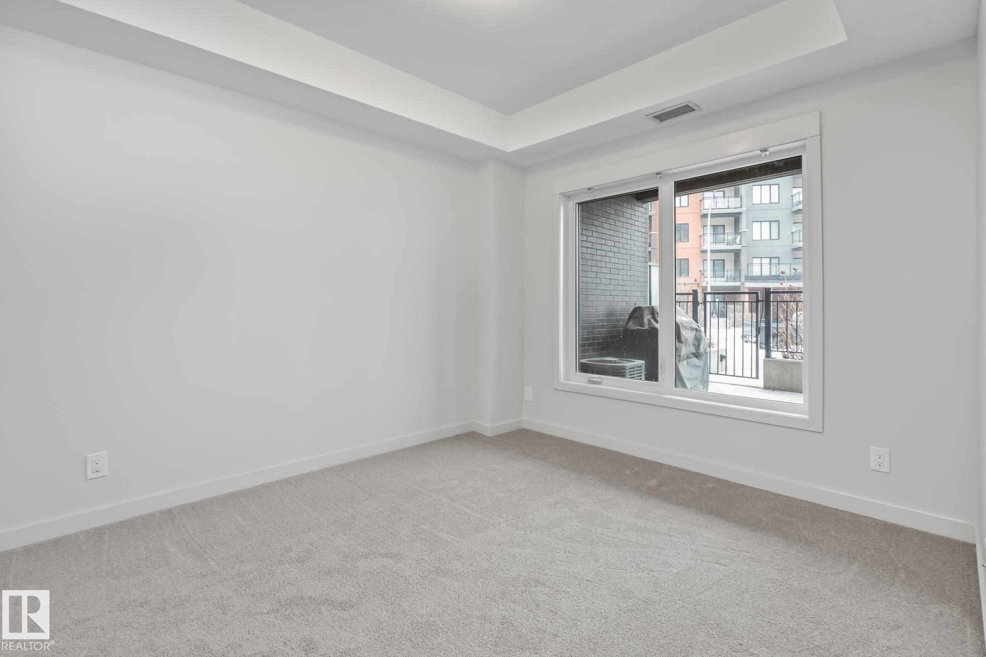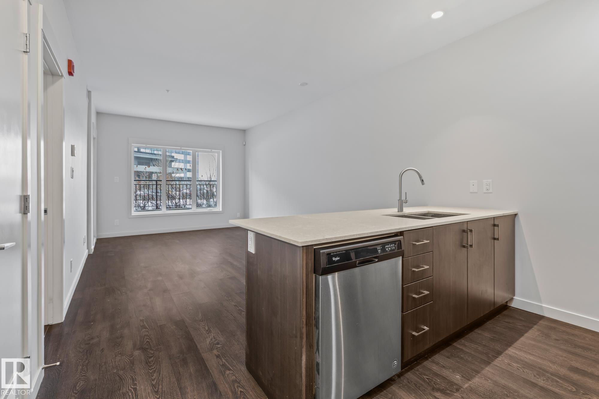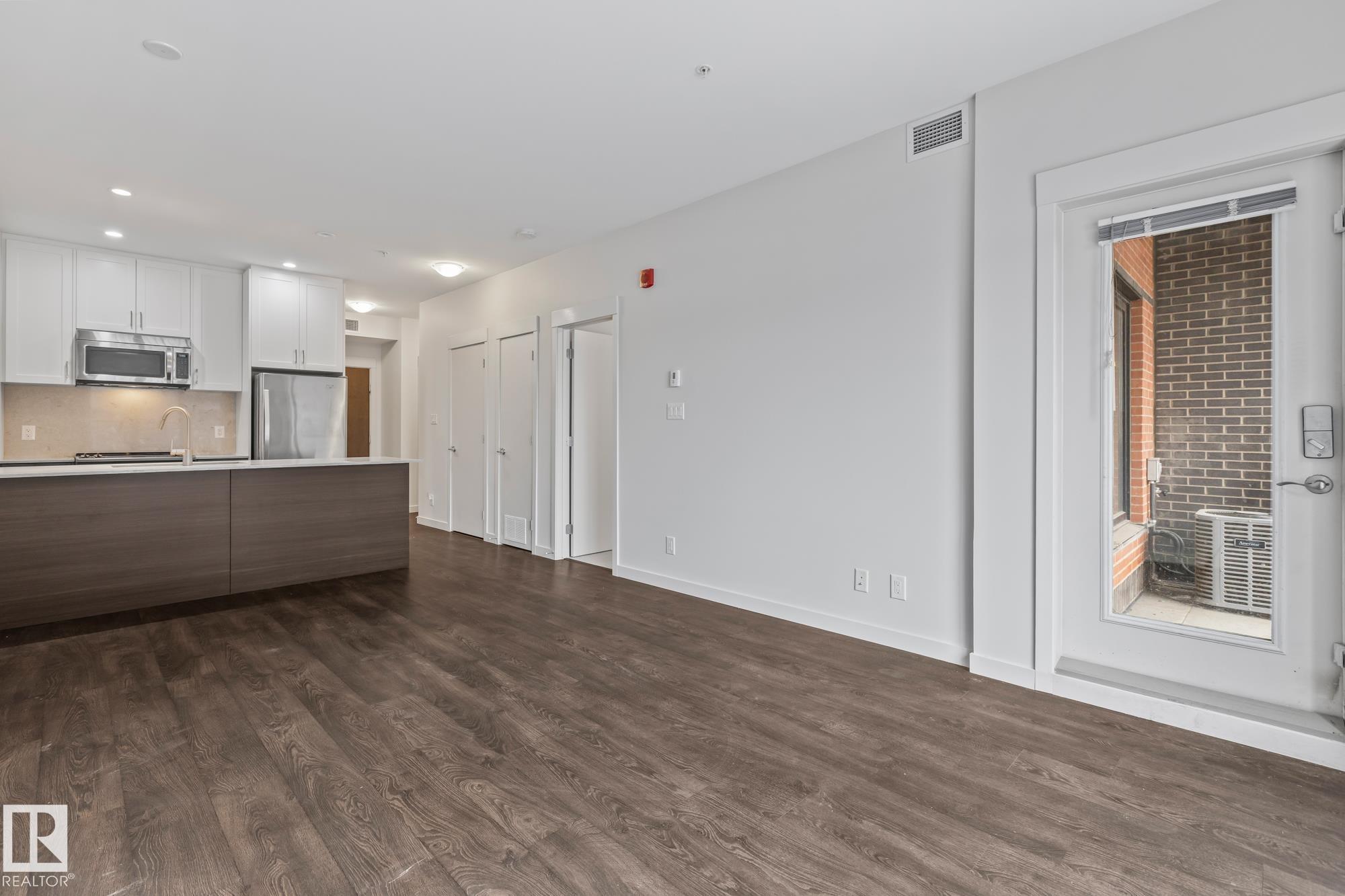 Main floor 1 bedroom, 1 bathroom condo in a prime St. Albert location just steps from Lions Park, the Sturgeon River trails, Farmers Market, and Downtown. This bright unit features 9 ft ceilings, quartz countertops, peninsula island, walk-through closet, in-suite laundry, and air conditioning. The patio door acts as your own private entrance for easy access. Includes 1 titled parking stall and storage cage. Pet friendly building with fitness room and party/entertainment room.