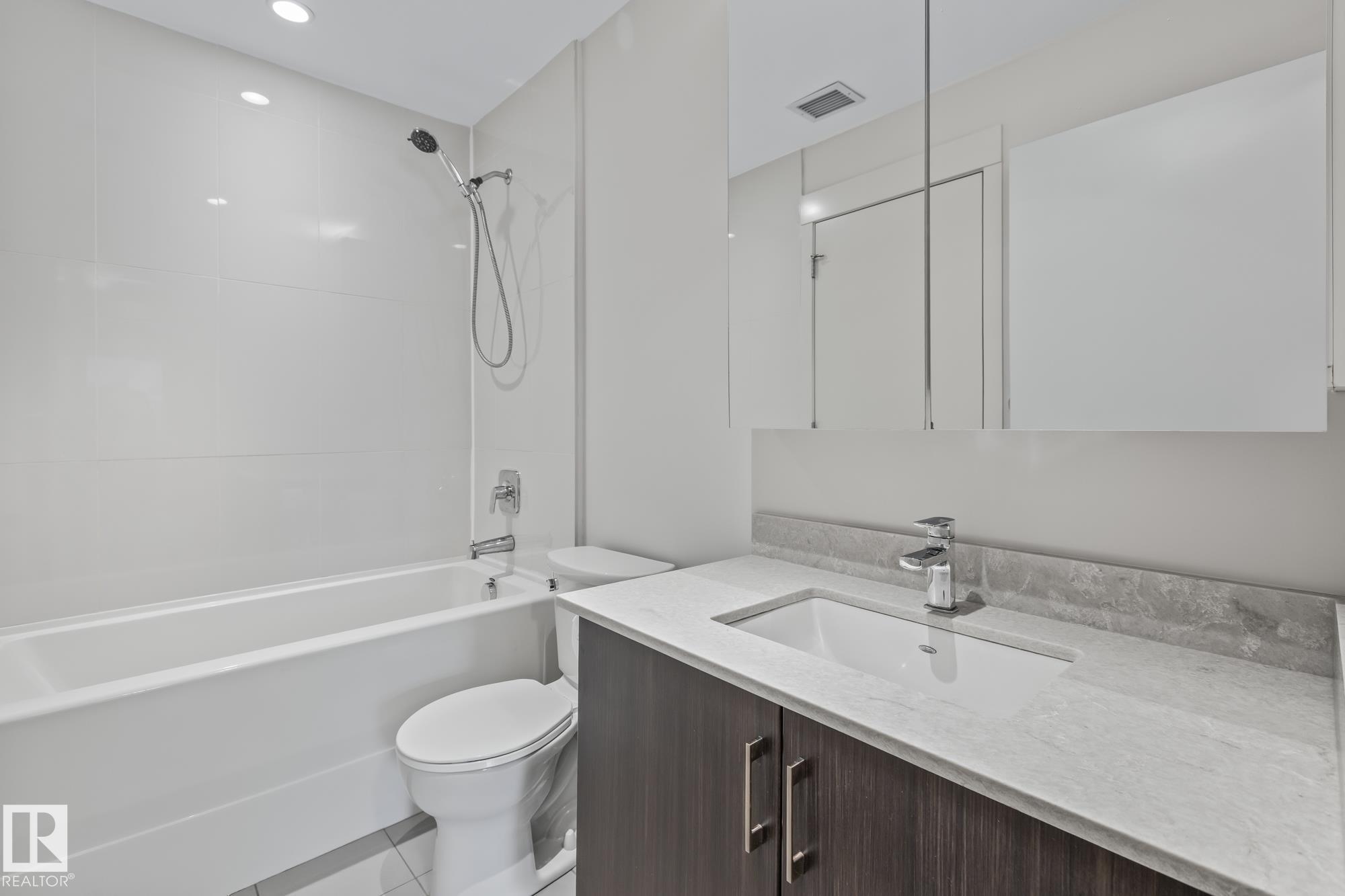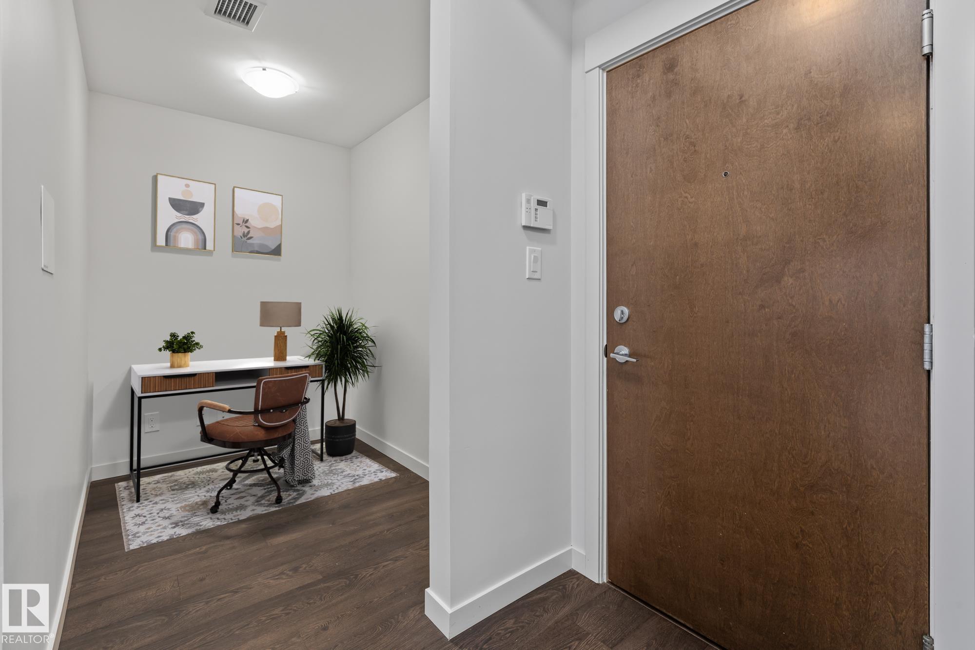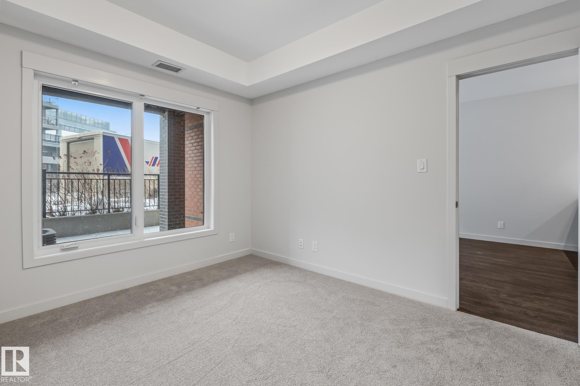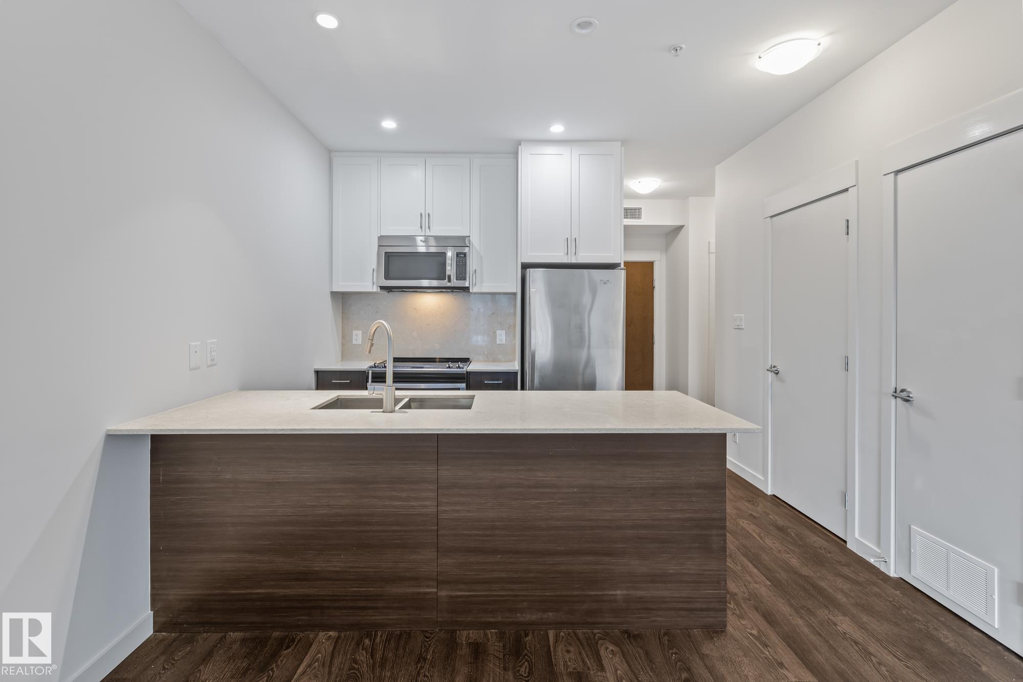Main floor 1 bedroom, 1 bathroom condo in a prime St. Albert location just steps from Lions Park, the Sturgeon River trails, Farmers Market, and Downtown. This bright unit features 9 ft ceilings, quartz countertops, peninsula island, walk-through closet, in-suite laundry, and air conditioning. The patio door acts as your own private entrance for easy access. Includes 1 titled parking stall and storage cage. Pet friendly building with fitness room and party/entertainment room.