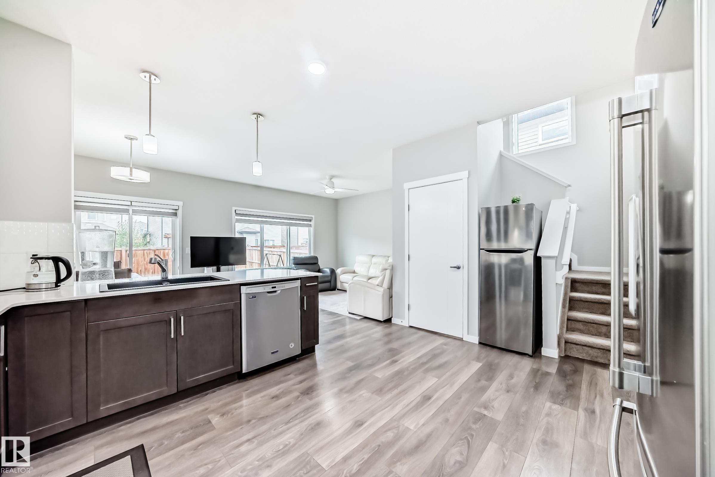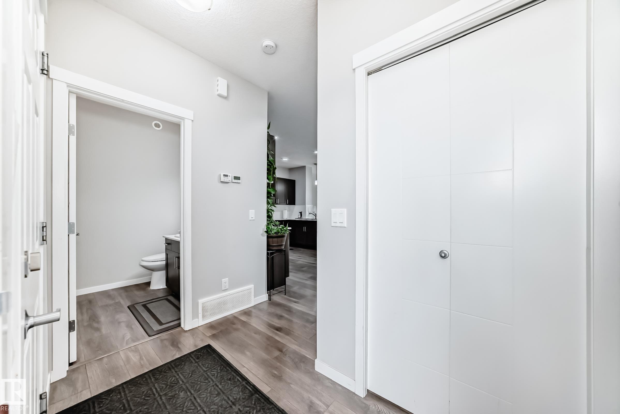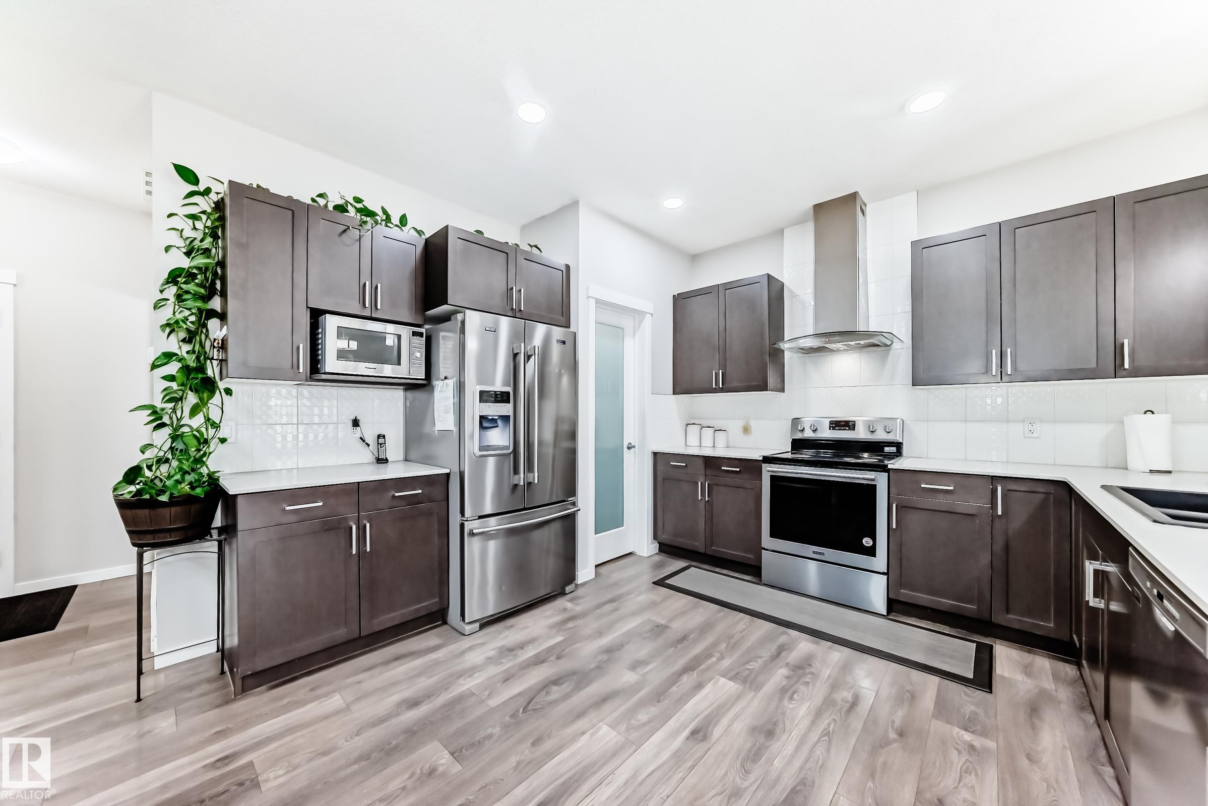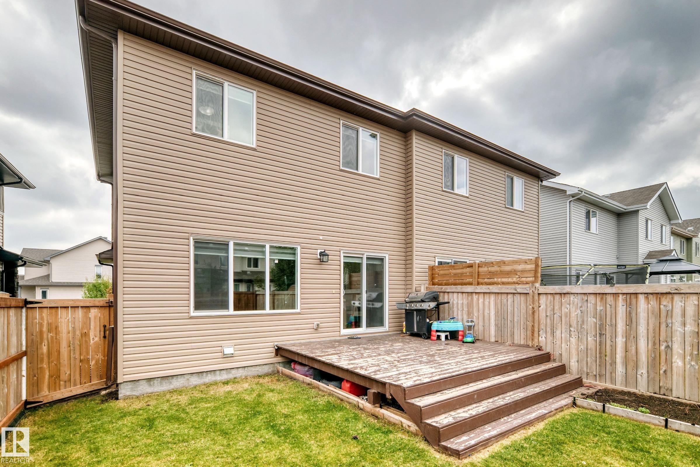 Spacious well-kept 1640 sq ft two storey home with a fresh coat of paint and new carpets. Three bedroom, three bath home with room to install a separate enterance in the quiet community of Rapperswill in North Edmonton. 9 ft ceilings on the main floor, quartz countertops, stainless steel appliances, laminate flooring throughout. Open concept kitchen w/ a huge walk-in pantry! Bright living room and dining room with patio doors to a large deck & fenced large backyard. Upper floor has 3 bedrooms, full bathroom...