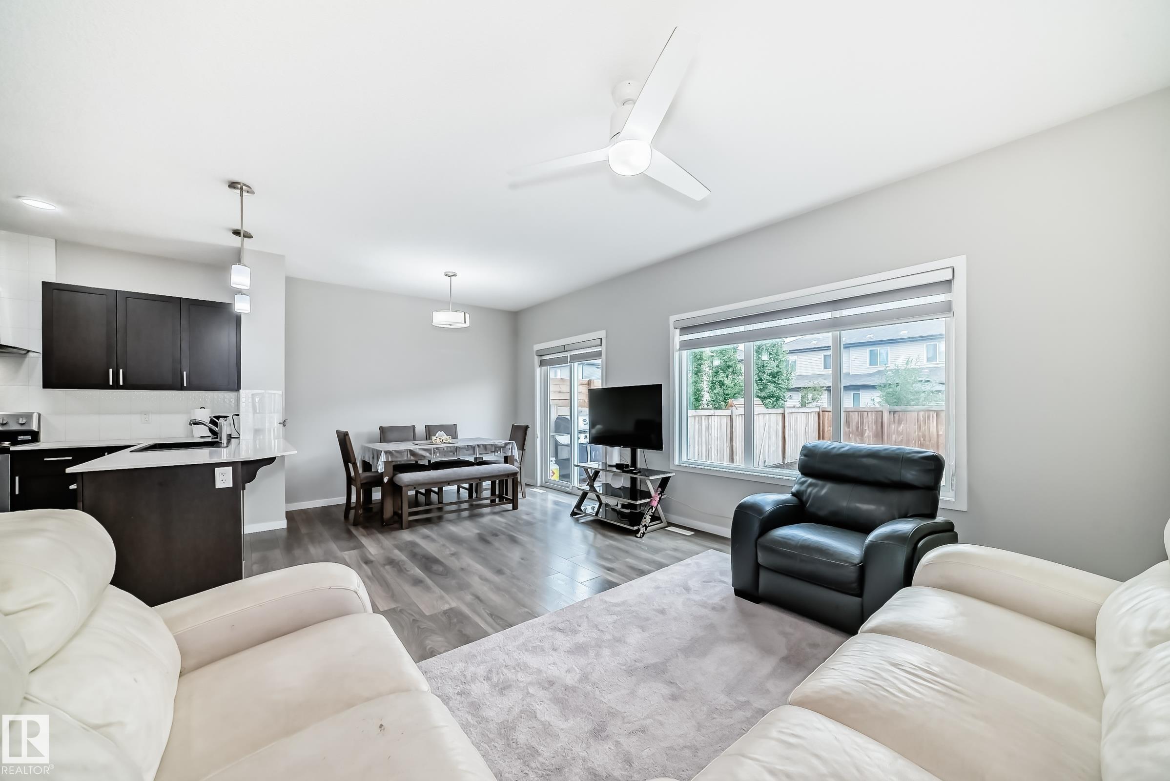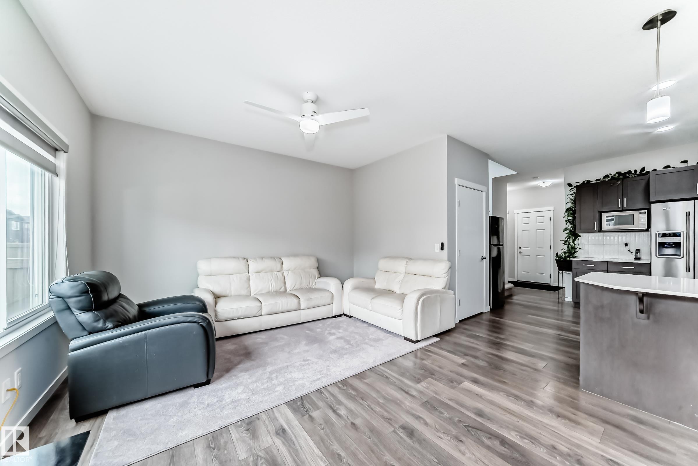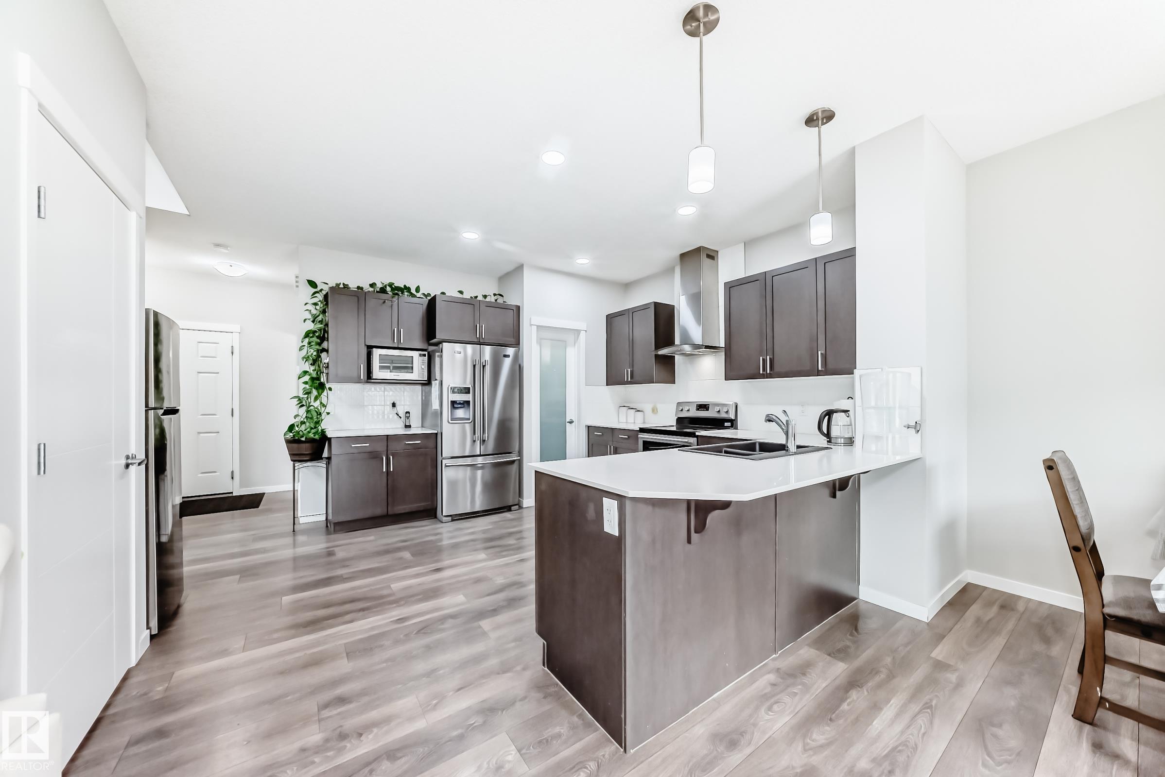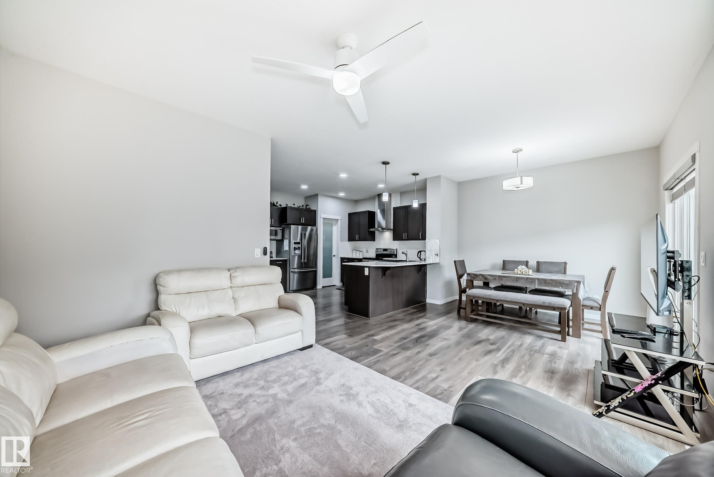Spacious well-kept 1640 sq ft two storey home with a fresh coat of paint and new carpets. Three bedroom, three bath home with room to install a separate enterance in the quiet community of Rapperswill in North Edmonton. 9 ft ceilings on the main floor, quartz countertops, stainless steel appliances, laminate flooring throughout. Open concept kitchen w/ a huge walk-in pantry! Bright living room and dining room with patio doors to a large deck & fenced large backyard. Upper floor has 3 bedrooms, full bathroom...