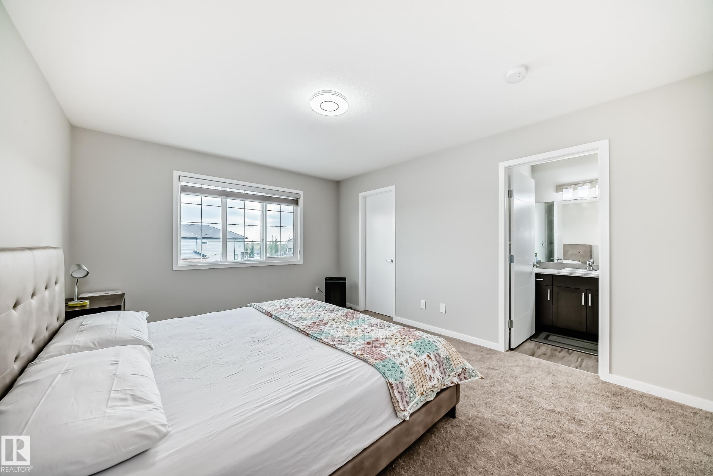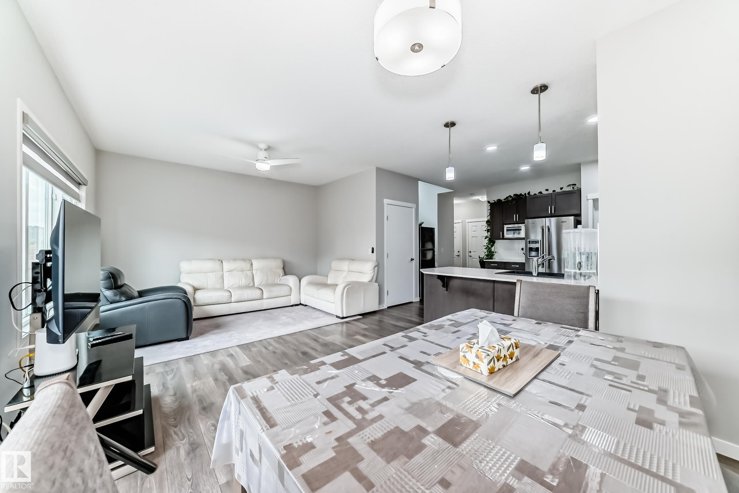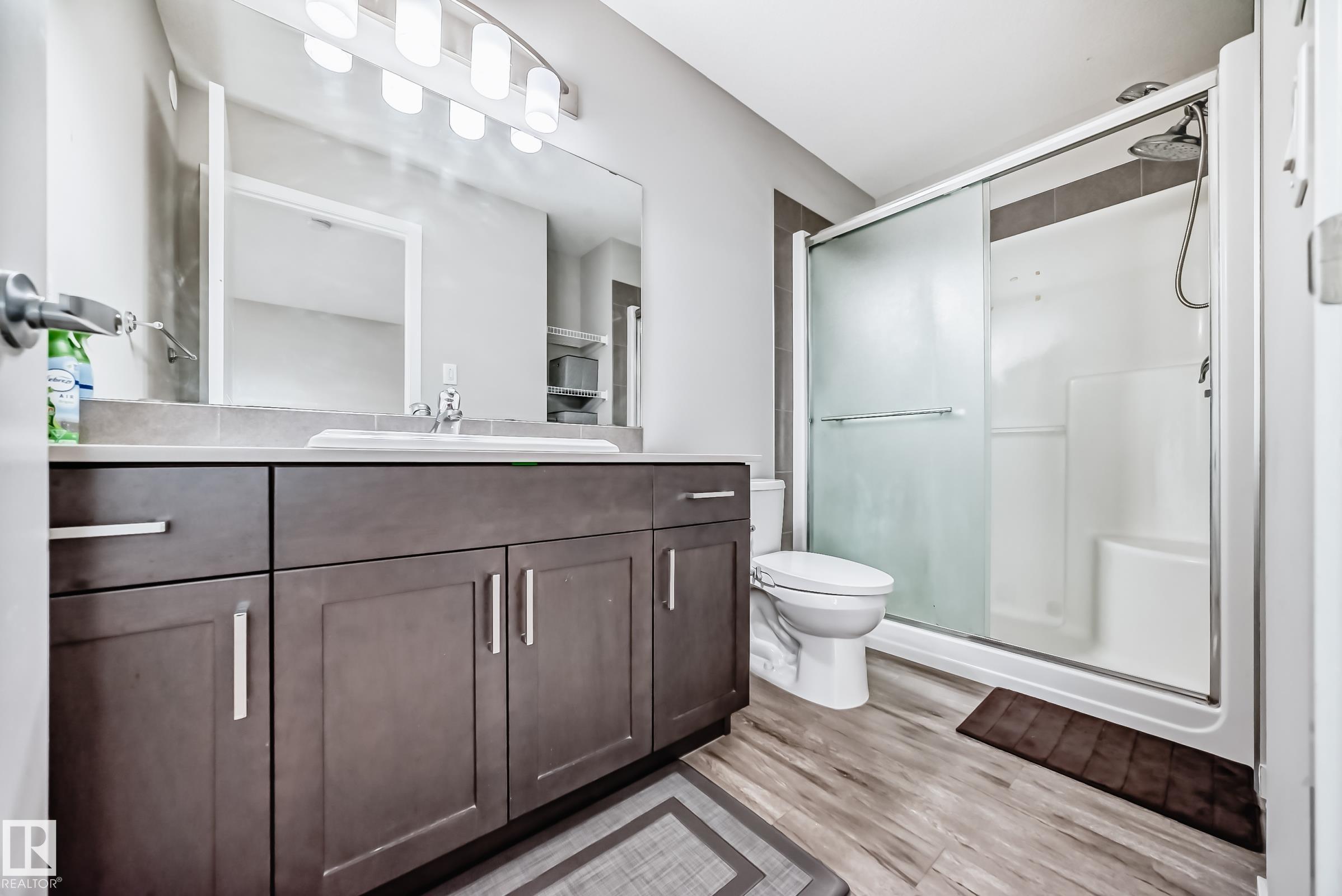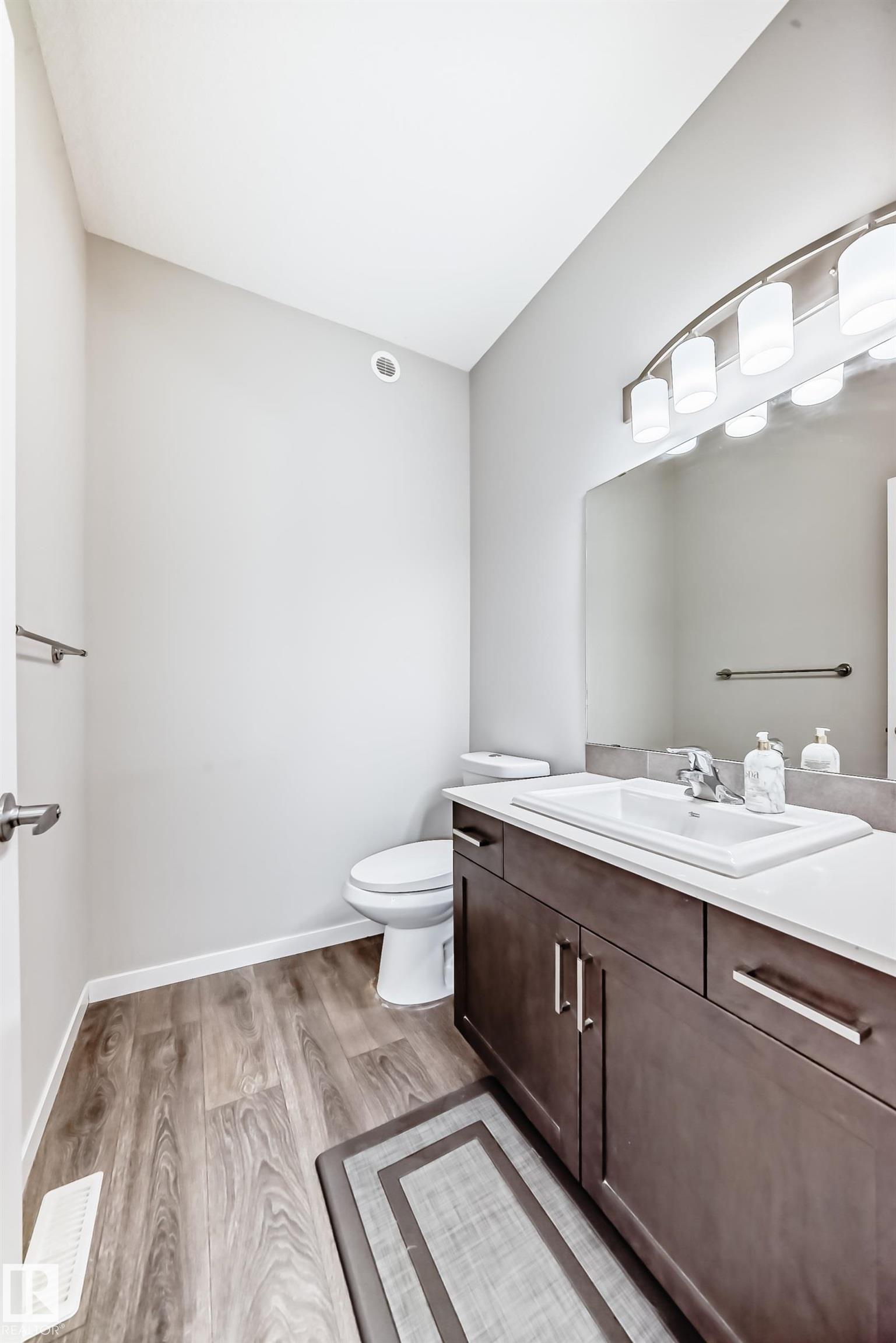 Spacious well-kept 1640 sq ft two storey home with a fresh coat of paint and new carpets. Three bedroom, three bath home with room to install a separate enterance in the quiet community of Rapperswill in North Edmonton. 9 ft ceilings on the main floor, quartz countertops, stainless steel appliances, laminate flooring throughout. Open concept kitchen w/ a huge walk-in pantry! Bright living room and dining room with patio doors to a large deck & fenced large backyard. Upper floor has 3 bedrooms, full bathroom...