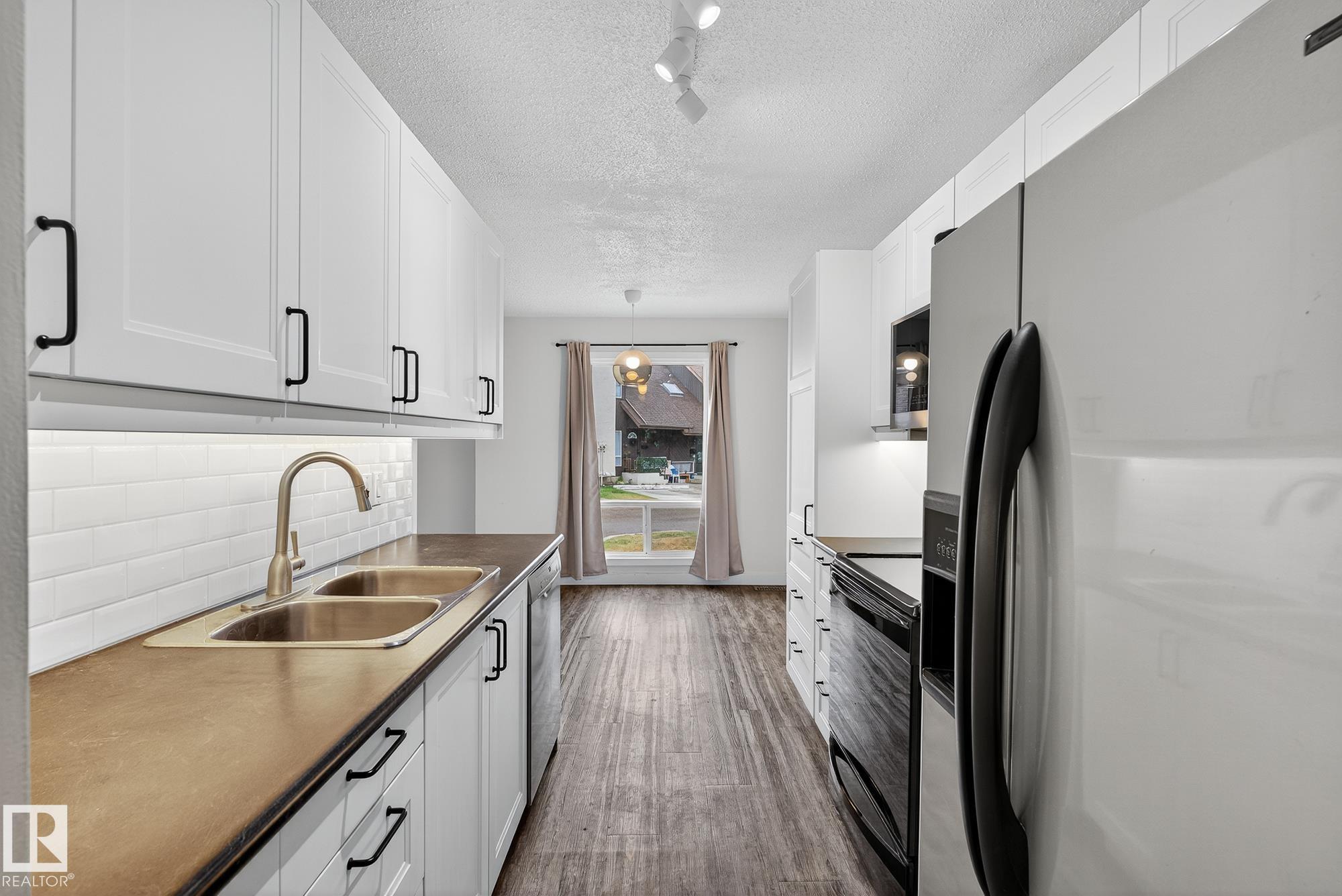 Welcome to Balmoral Lane ! This updated 2-storey townhouse offers 1142 sq ft of inviting living space BACKING ONTO SAKAW PARK! Upstairs you'll find a FULLY RENOVATED 4piece bath ( 2025 ), and three comfortable bedrooms all together on one level along with a huge skylight. The main floor features a spacious living room with an electric fireplace, dining area, and a RENOVATED KITCHEN with newer cabinets. Direct access is available through the back door to your PRIVATE FENCED YARD complete with red brick pat...
