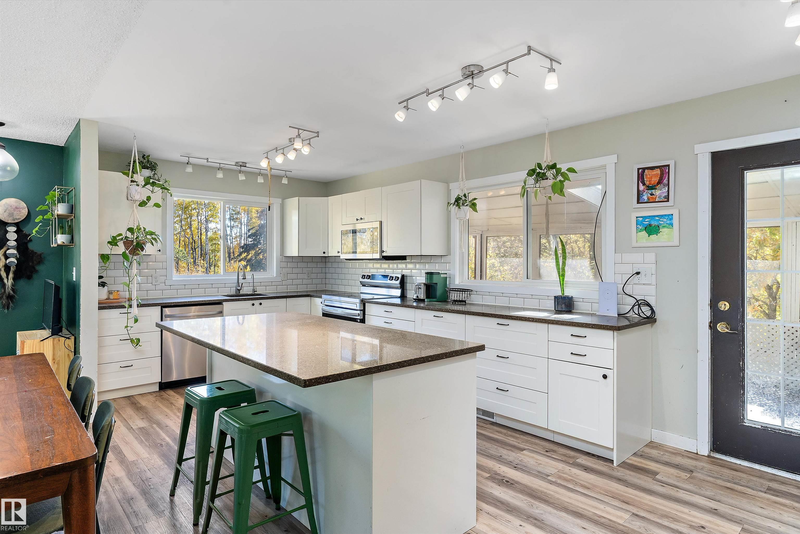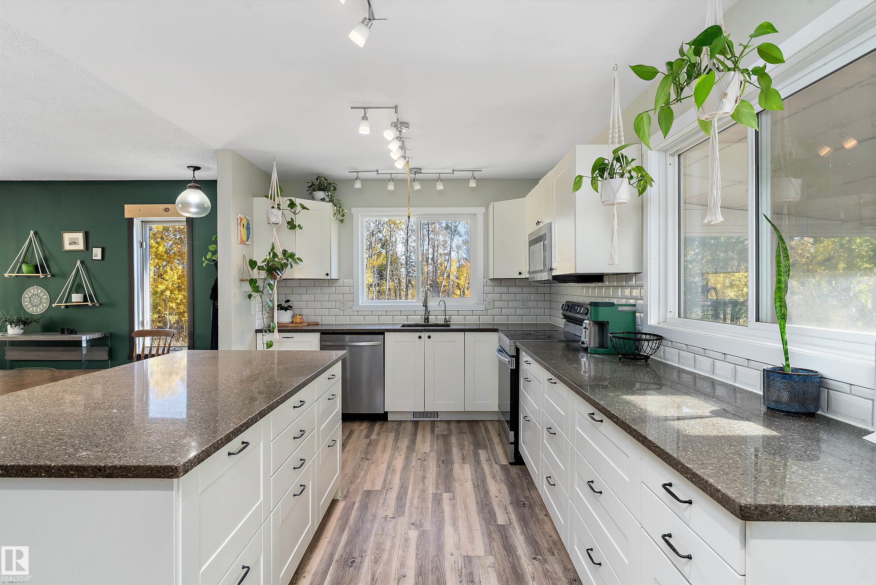 Welcome to your acreage oasis. This treed lot offers 3.98 acres of unlimited options. Fenced for horses, chicken coops, and a mature garden to lower your grocery bill. Just a short drive to Stony Plain, with a newly paved road right to the subdivision and paved roads in the subdivision will save your vehicles from gravel. 6 month old appliances included. An open concept floor plan with a large island and quartz countertops. Fully finished walkout basement with 2 additional bedrooms and a bathroom, a rec roo...