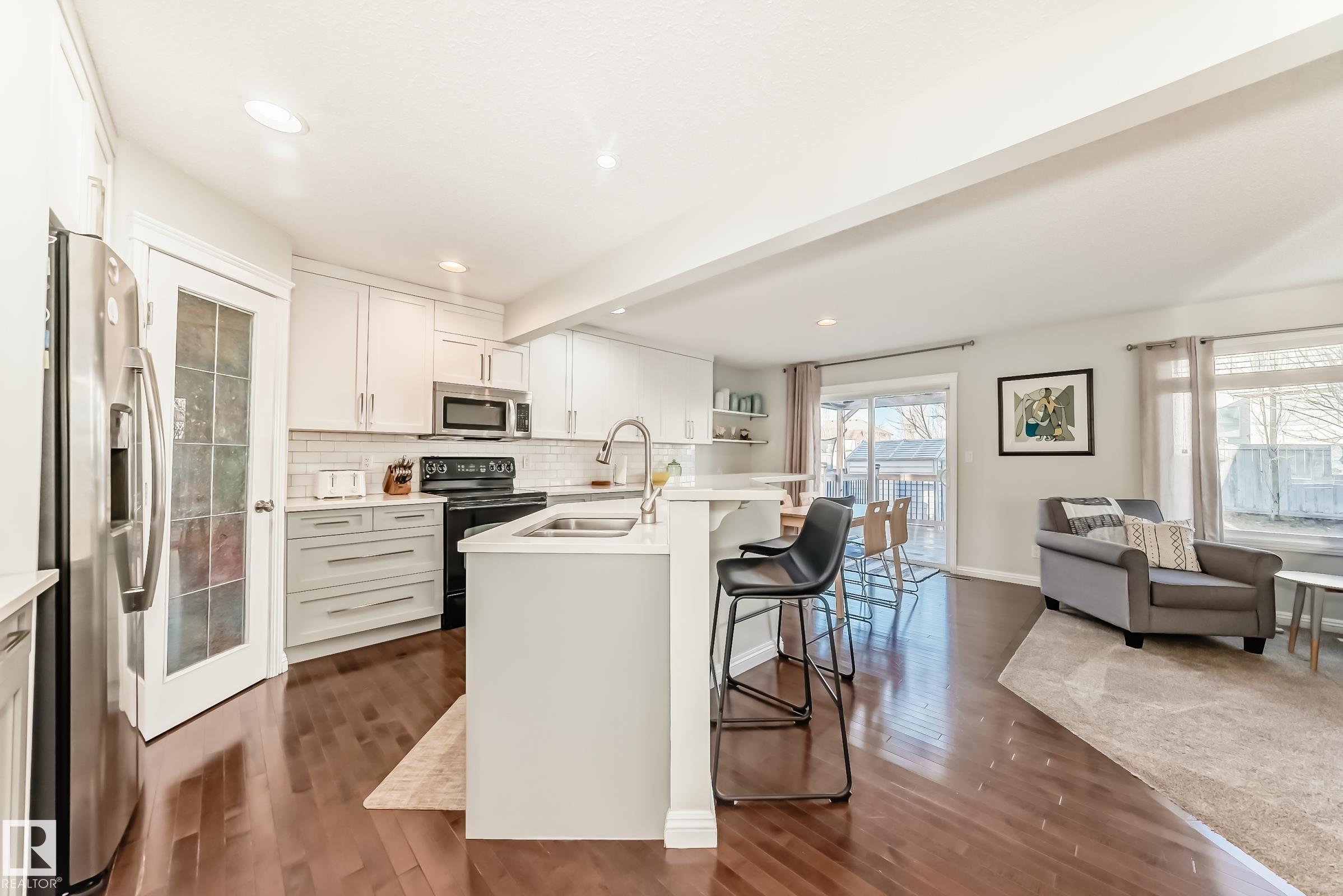 Welcome to the desirable Hamptons community! This home is steps from parks, ponds, and walking trails, and sits across from the pond on a wide street with a comfortable sense of space between homes. This fully finished 5 bedroom home is located in an established neighborhood with schools and amenities in place, including Bessie Nichols Public K-9 and Sister Annata Brockman Catholic K-9, both a short walk away. The main floor features updated custom cabinetry, while the fully finished basement offers 2 bedro...