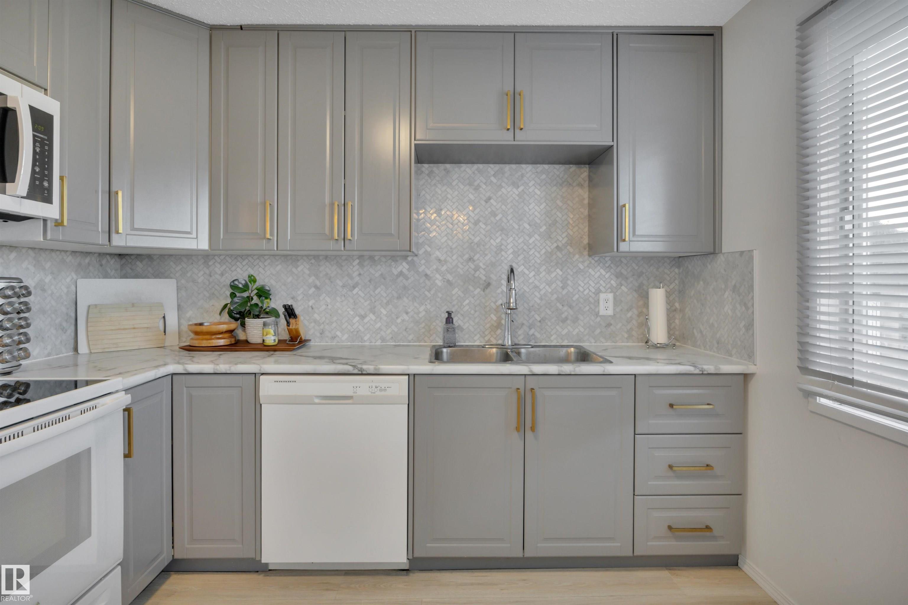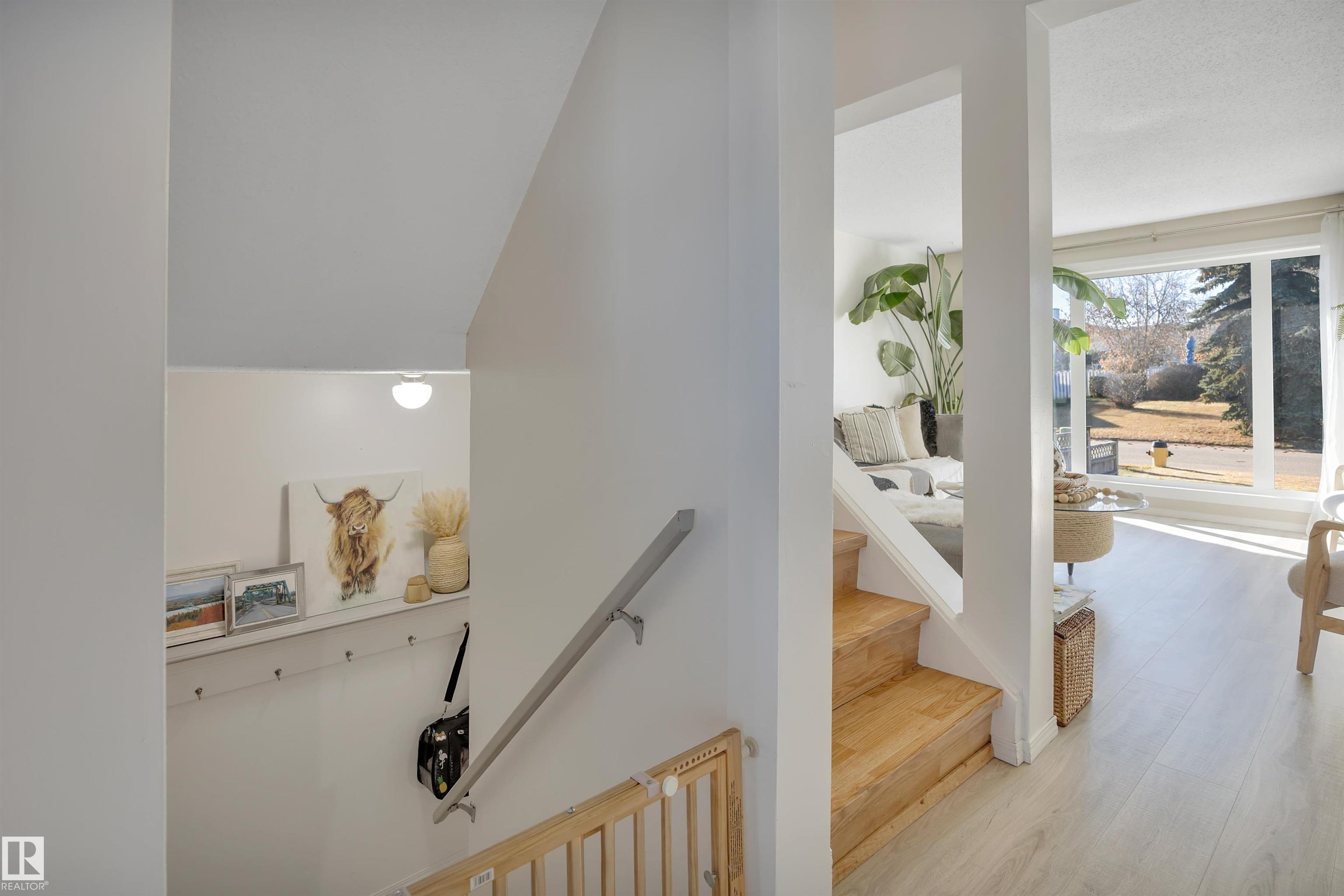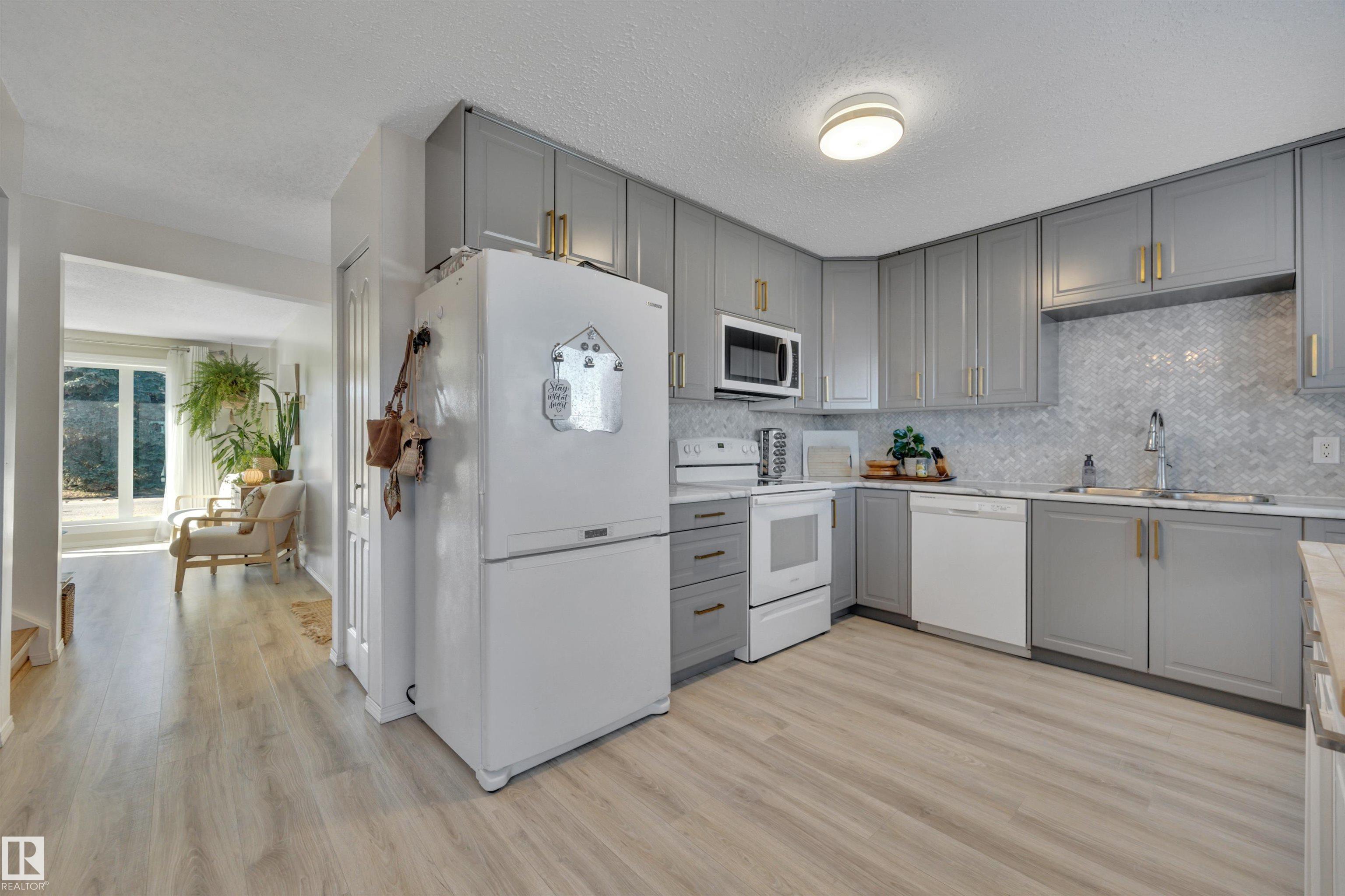 BEAUTIFULLY RENOVATED! BACKS GREENSPACE! BRAND NEW DECK! This 1233 sq ft 3 bed, 1.5 bath 2 story is pinterest worthy and is perfect for the first time buyer or downsizer! Feat: newer vinyl plank flooring, lighting, custom chic kitchen w/ soft close cabinets, laminate carrara countertops, some windows replaced, refreshed bathrooms, paint, AC, concrete walkway & more! Covered entryway leads into a bright & spacious living room w/ massive window for natural light & 2 pce bathroom. L shaped kitchen w/ white app...