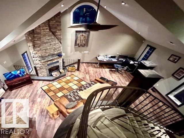 Set on 20 spacious acres near Wizard Lake, this property is perfectly suited for horses or hobby farm enthusiasts. The land is fully fenced with metal fencing, includes a dugout, a tarped quonset, triple garage, single garage, and multiple outbuildings for storage and flexibility.The 2-storey walkout home features vaulted ceilings, a floor-to-ceiling stone fireplace, and a renovated kitchen with granite counters and stainless steel appliances. The main floor also offers updated bathrooms, while upstairs the...