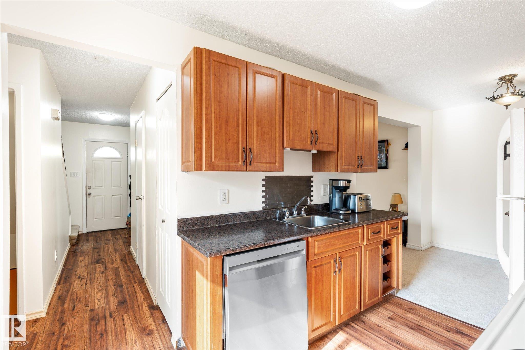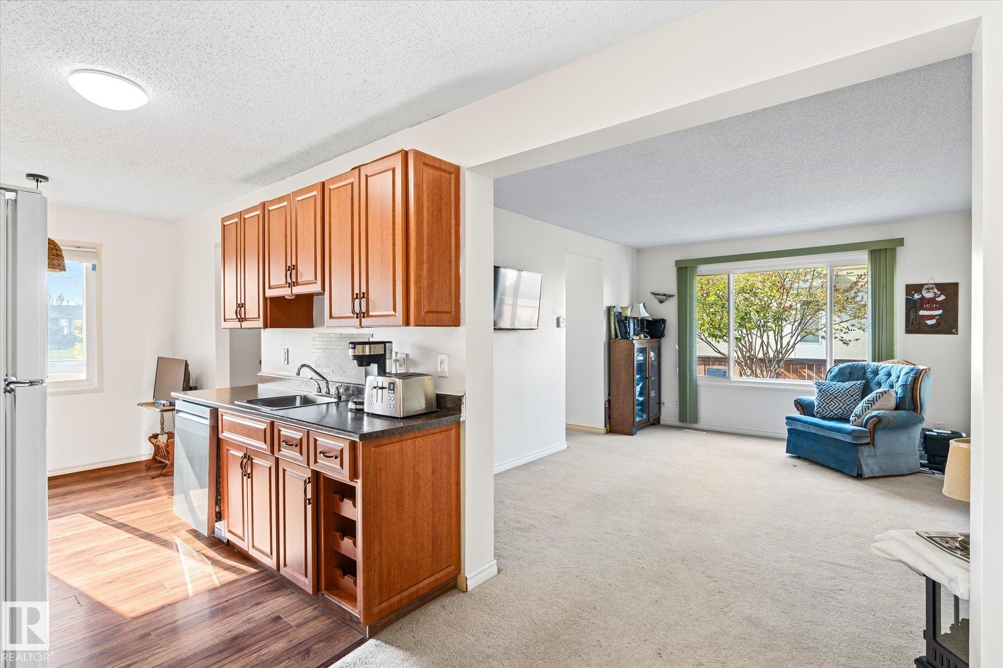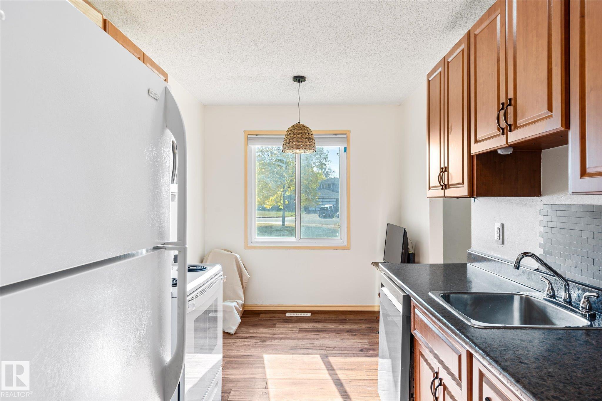 This 2-storey end-unit townhouse offers 3 bedrooms, 1.5 bathrooms, and a fully finished basement, presenting an excellent opportunity for first-time buyers or downsizers. With a functional layout and generous living space, this home is ready for your personal touch and updates to unlock its full potential. Ideally located, it backs onto a tranquil greenbelt while remaining just minutes from West Edmonton Mall, public transit, schools, and a wide range of amenities. The combination of convenience, privacy, a...