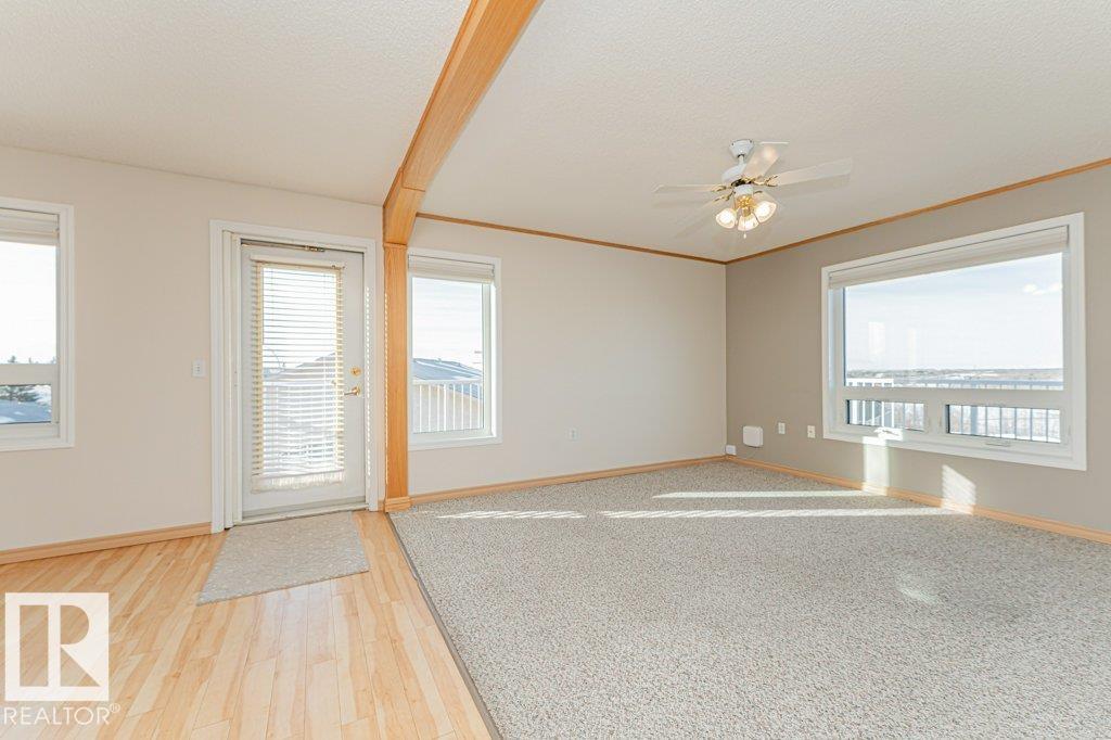 Welcome to Valley Ridge—an exceptional 50+ community offering comfort, convenience, and lifestyle. This top-floor 2 bedroom, 1 bath condo features a rare wrap-around deck with unobstructed views of the North Saskatchewan River Valley—perfect for enjoying peaceful mornings and stunning sunsets. Bright and move-in ready, this home includes all major appliances, in-suite laundry, and a spacious storage room. The self-managed building offers a guest suite, social room, workshop, and convenient car wash in the h...
