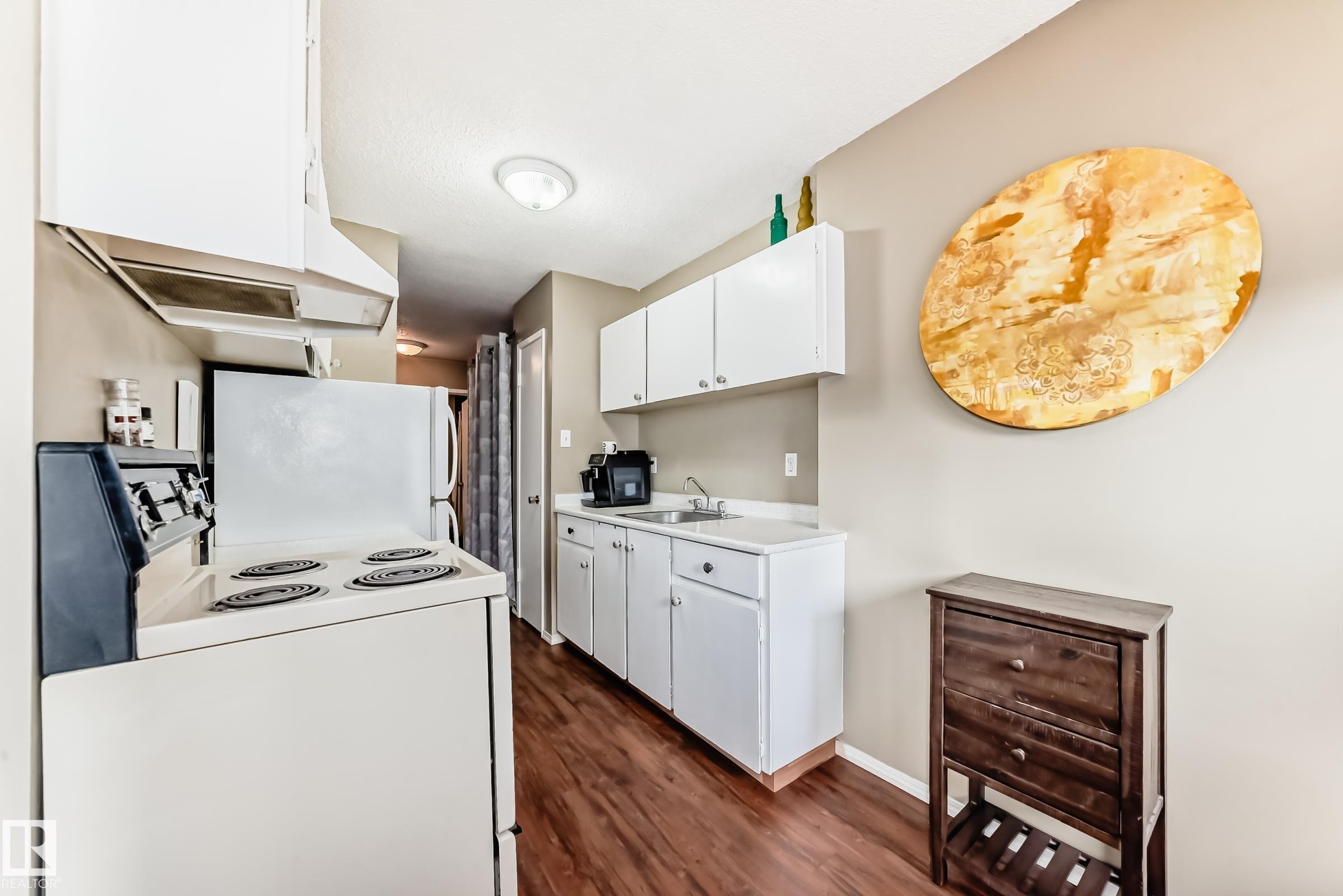 Top-floor 1-bedroom condo in a prime, walkable location just steps to 124 Street shops, restaurants, and the Brewery District, An ideal opportunity for professionals or investors seeking low-maintenance living and strong rental appeal. With only one shared wall, the unit offers excellent privacy and quiet enjoyment. Thoughtfully updated with luxury vinyl plank flooring, newer windows, patio door, and deck. A modernized bathroom with new tub and clean, functional finishes throughout. The efficient kitchen co...