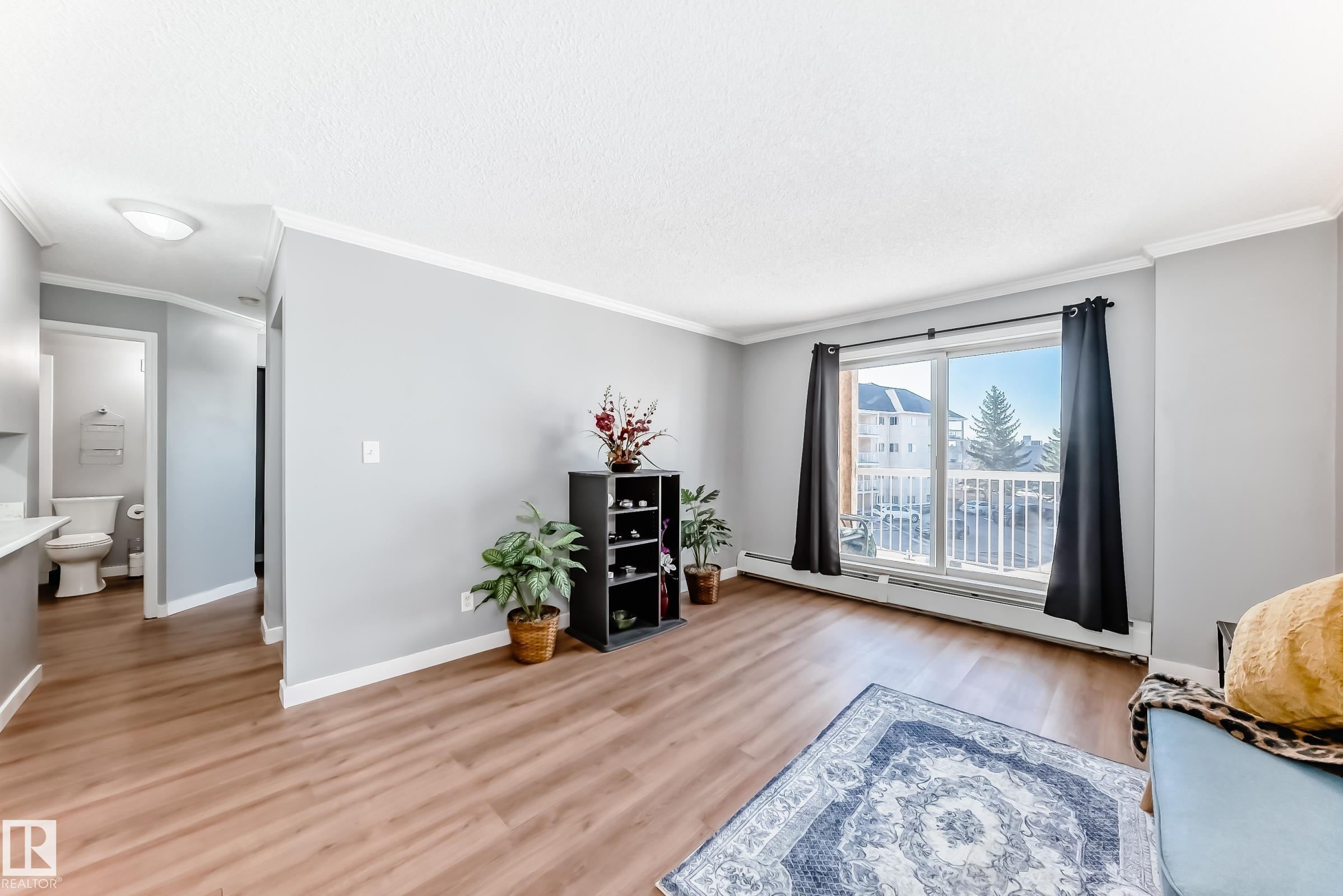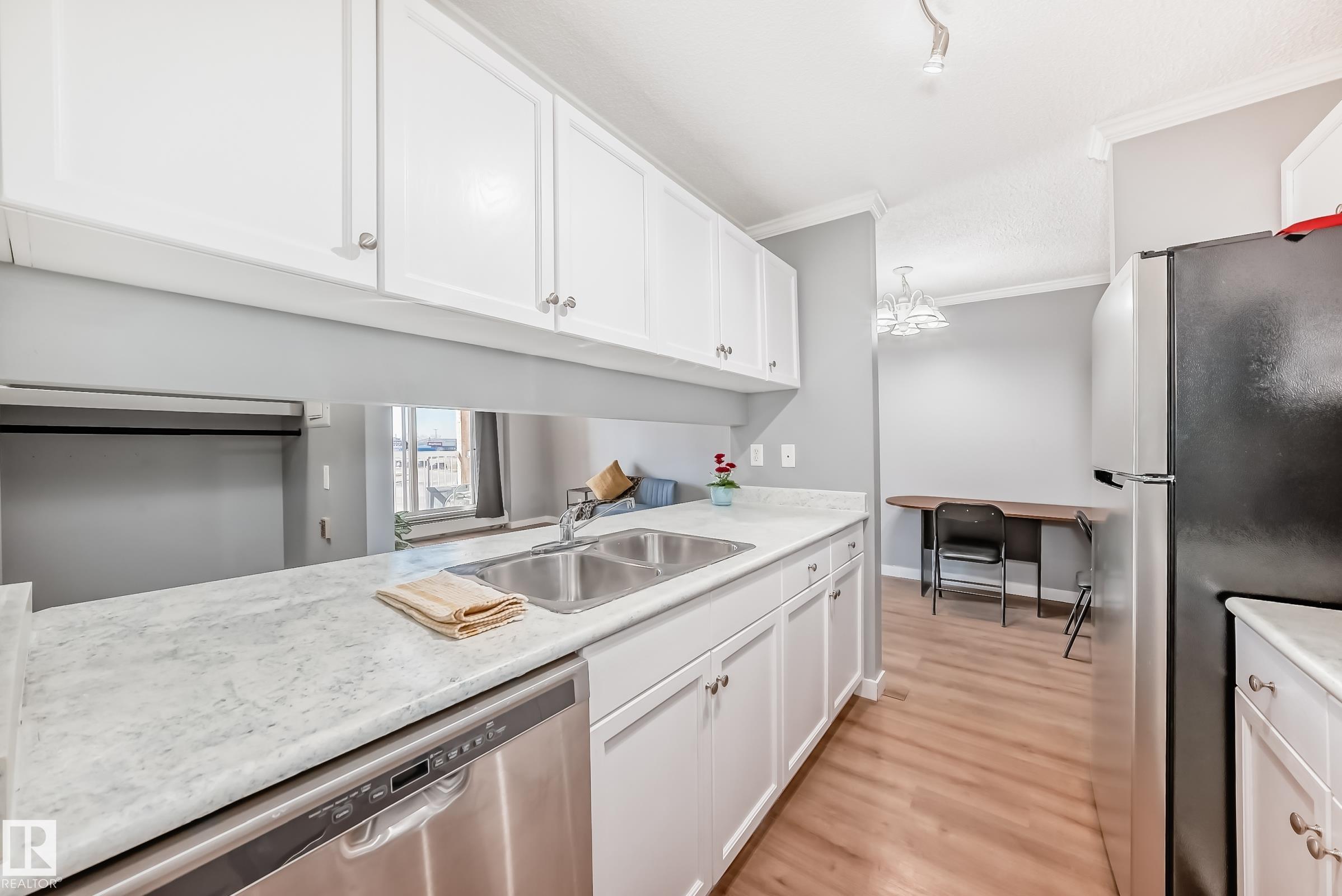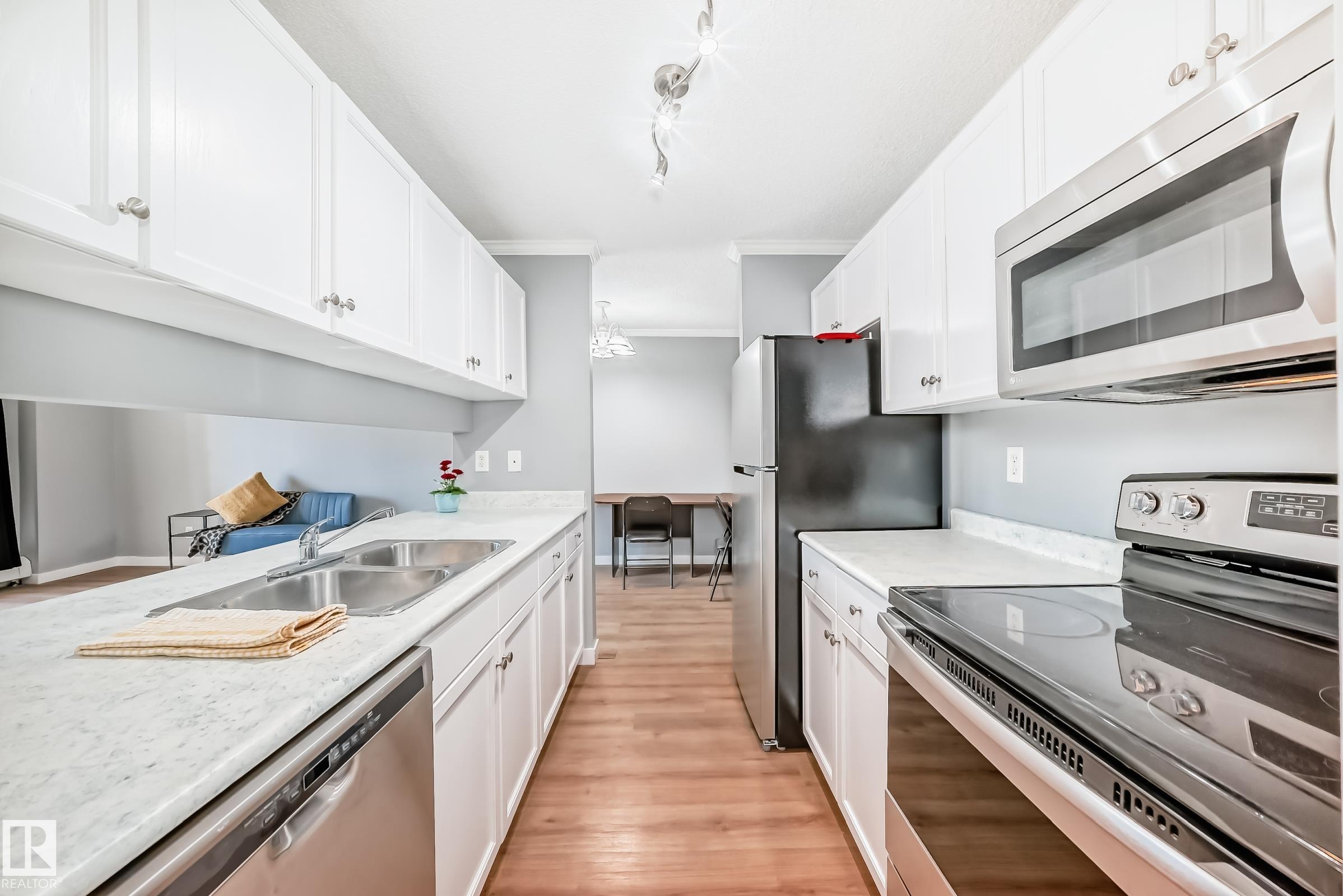 Beautifully updated 1-bedroom, 1-bath condo with tons of bright, functional living space—ideal for first-time buyers, professionals, students, or investors. This well-maintained unit features new laminate flooring, fresh paint, and a sunny south-facing balcony. The open-concept layout is filled with natural light and showcases a modern kitchen with ample cabinetry and appliances. The spacious primary bedroom easily accommodates a king-sized bed and includes a large closet, while in-suite storage and in-suit...