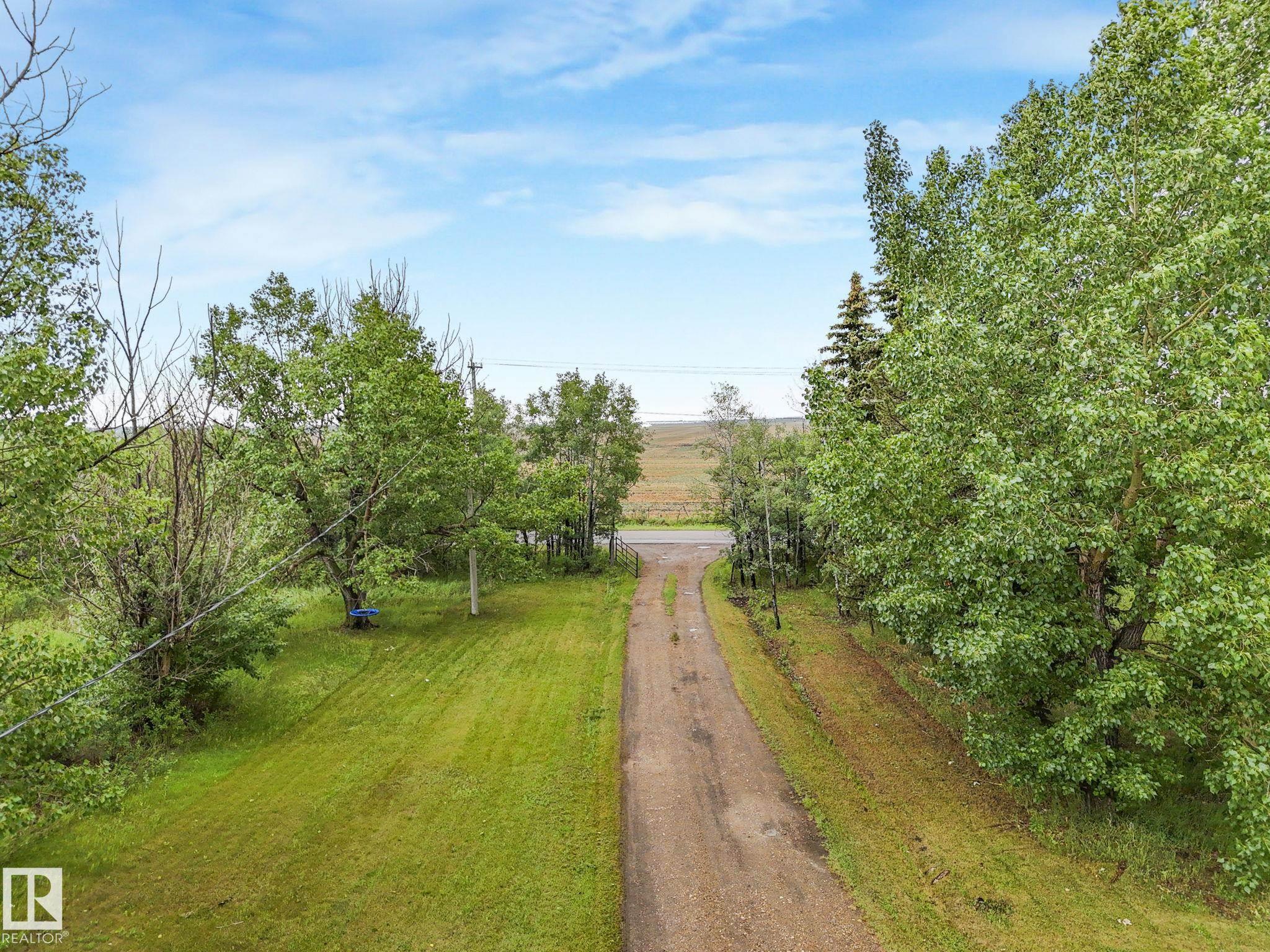 Prime North Edmonton Location – 40 Acres on Pavement Exceptional 40-acre parcel ideally situated on pavement just off 66 Street and Anthony Henday Freeway. The west side features mature trees offering privacy and natural beauty, while the east half is in productive crop. Includes an older two-story home with full services and an older shop. Perfect setting for estate living, a hobby farm, or a home-based business.