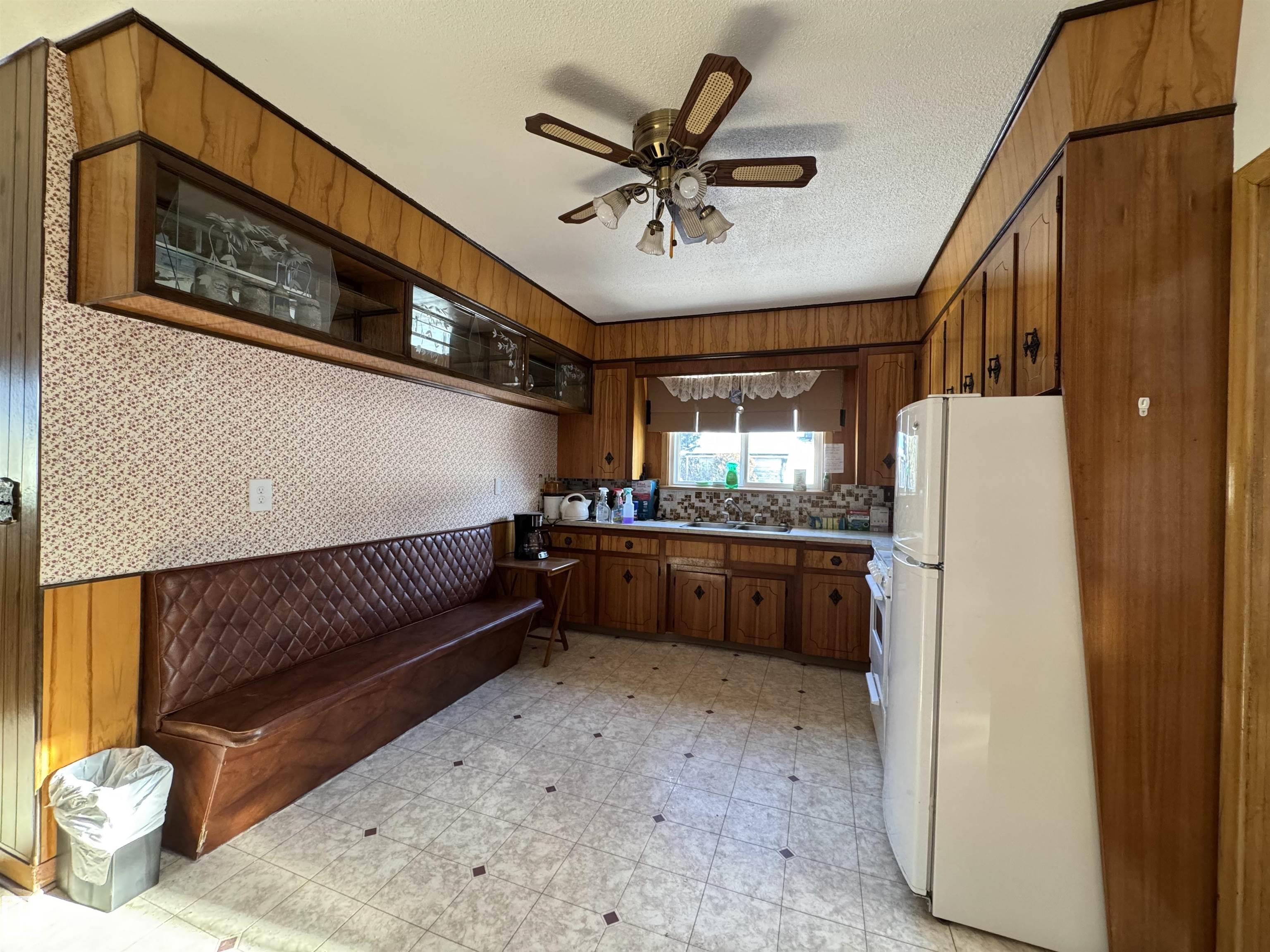 Situated on a large 9375 sq ft lot sits this lovely two bedroom bungalow. As one enters the home through a covered porch you are welcomed into the eat in kitchen with bench seating, a 4 pc updated bathroom and the secondary bedroom. A bright living room leads to a spacious primary bedroom. Downstairs features a partially finished basement complete with family room, laundry area, central vacuum and storage area. Updates throughout the years include, shingles, vinyl siding and windows, paved driveway, furnace...