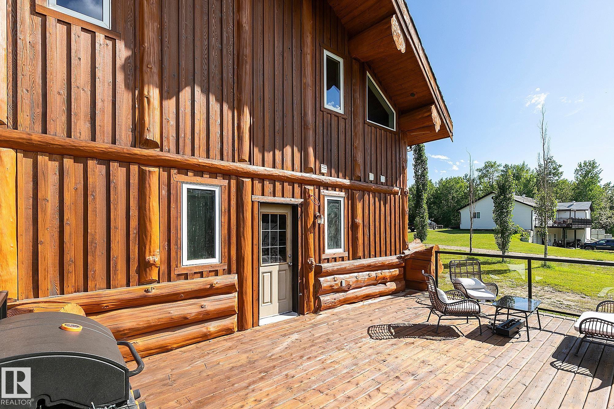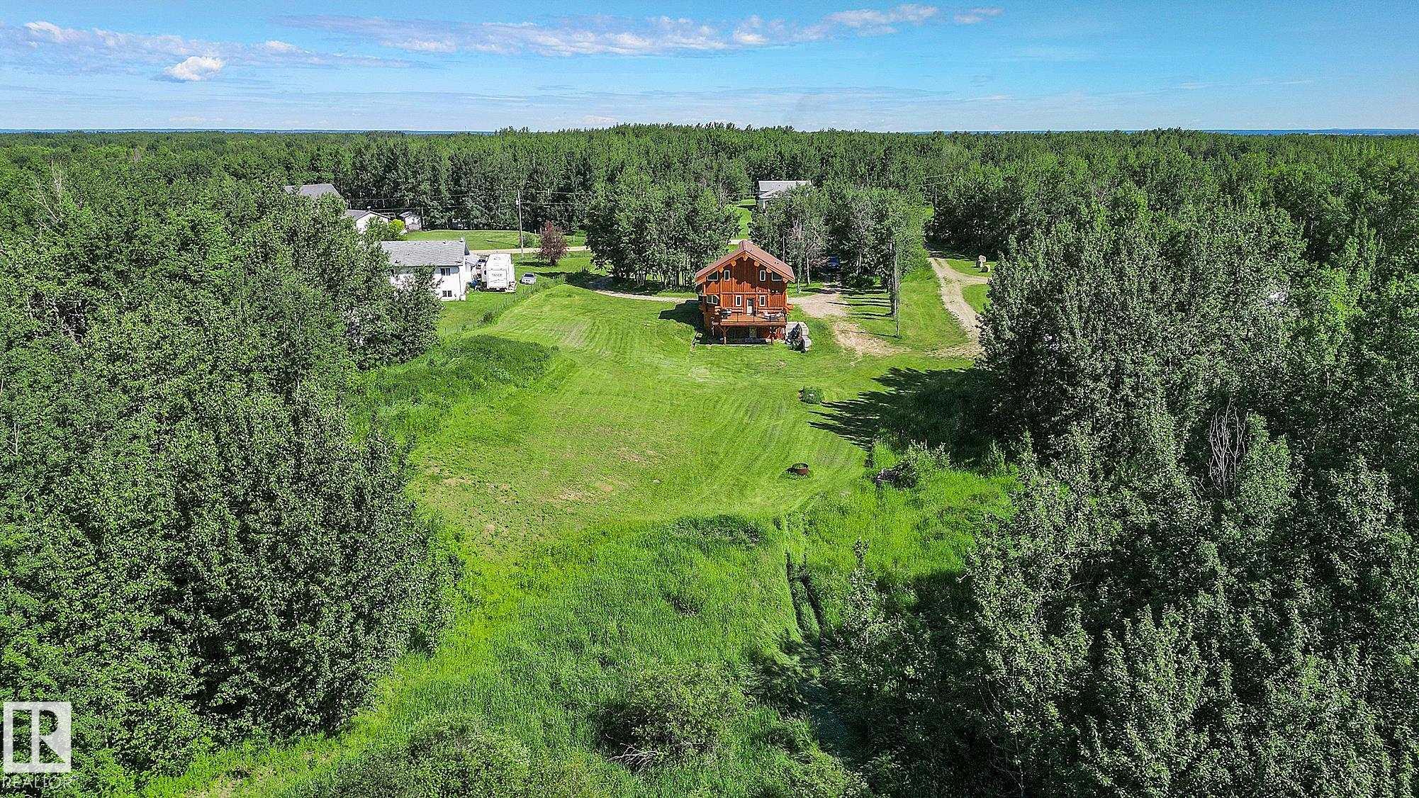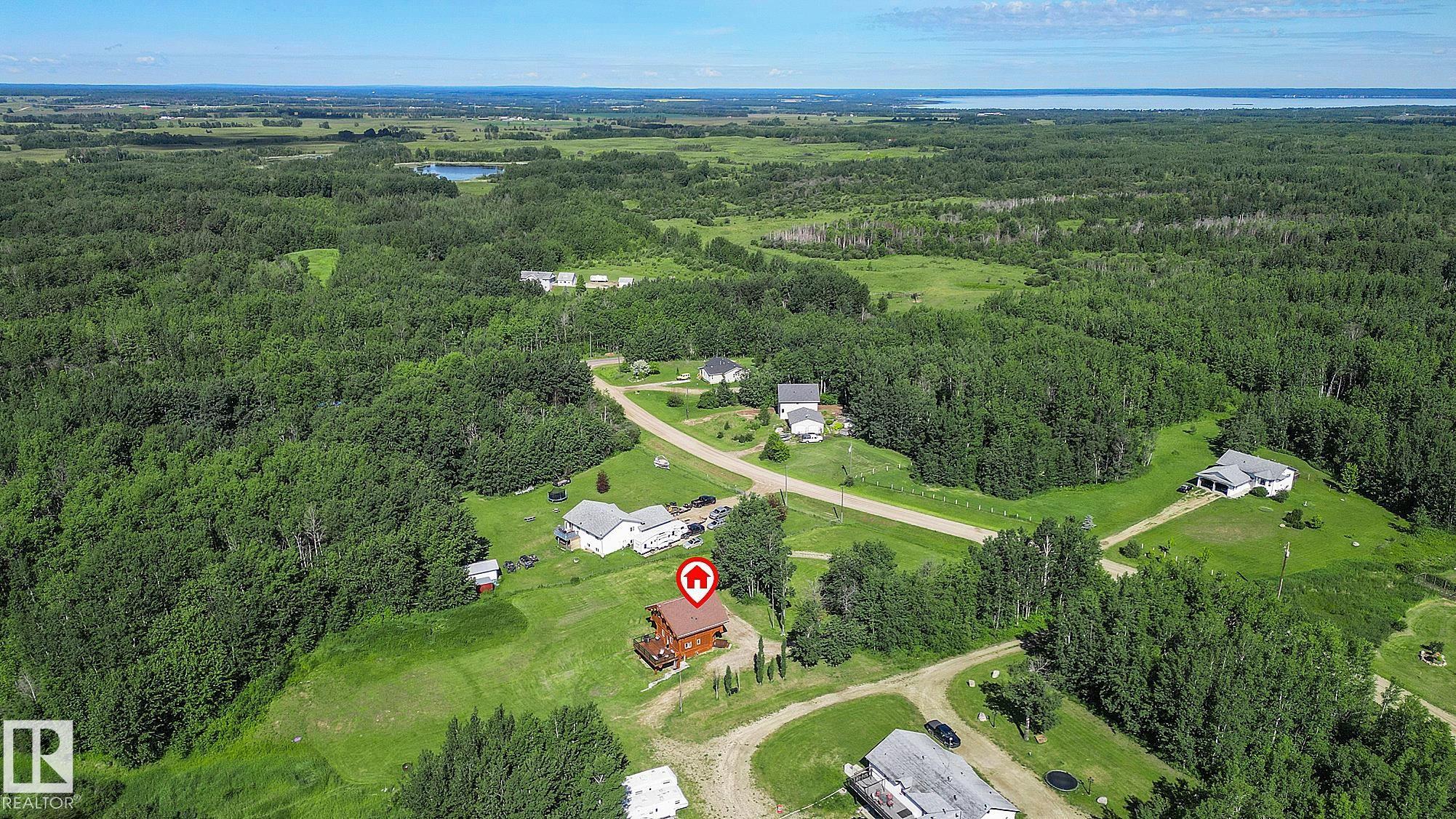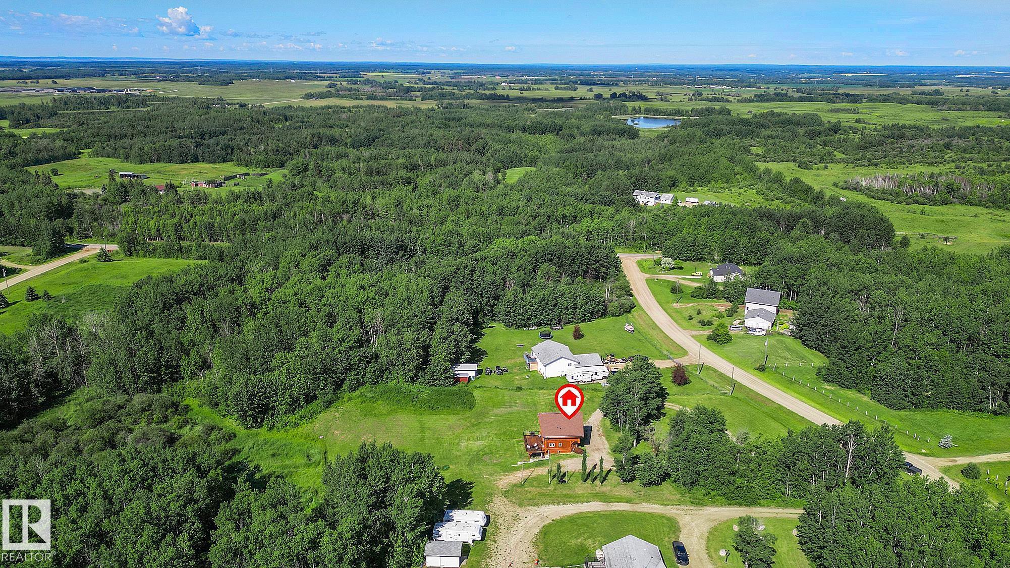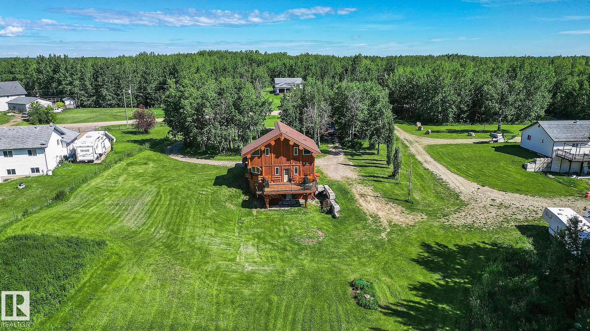 Live the acreage dream! Welcome to this stunning one-of-a-kind log home set on 2.03 acres surrounded by breathtaking views! Filled with character including a beautiful handcrafted log staircase, soaring timber beams & authentic rich wood finishing. Main floor features endless windows, open-to-above space & modern flooring. Charming country-style kitchen offers warm wood cabinetry, updated appliances, ample counter space, & a bright window above the sink. Open-concept living and dining area provides plenty ...