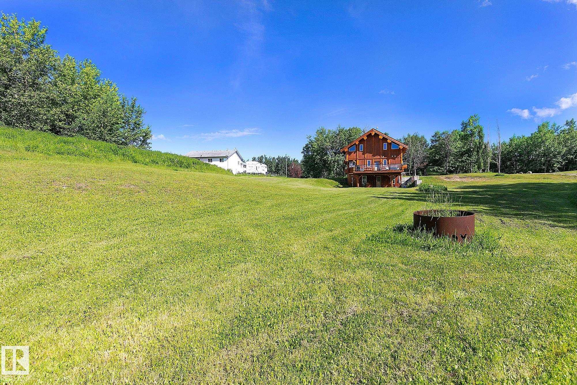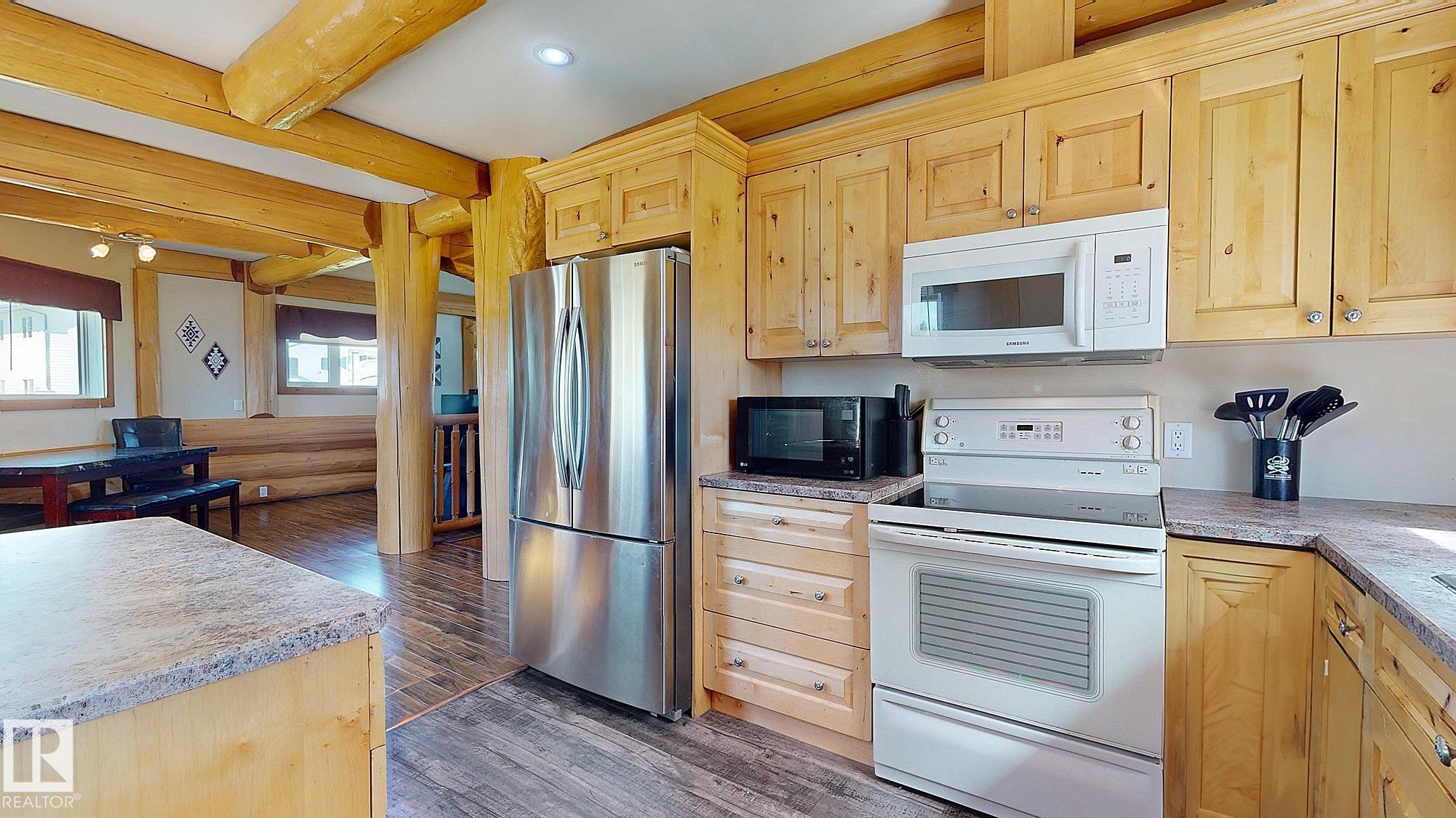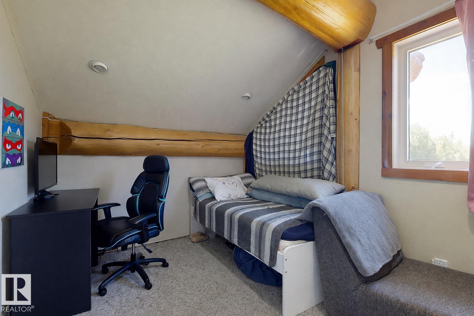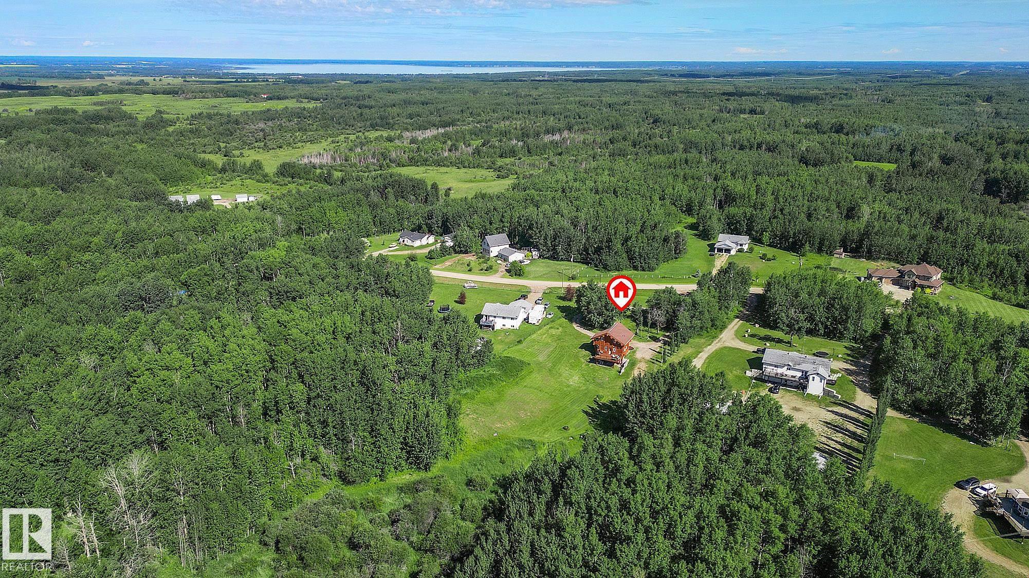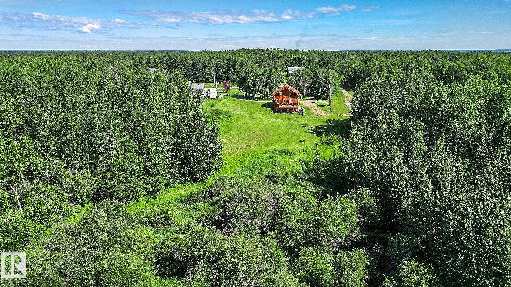Live the acreage dream! Welcome to this stunning one-of-a-kind log home set on 2.03 acres surrounded by breathtaking views! Filled with character including a beautiful handcrafted log staircase, soaring timber beams & authentic rich wood finishing. Main floor features endless windows, open-to-above space & modern flooring. Charming country-style kitchen offers warm wood cabinetry, updated appliances, ample counter space, & a bright window above the sink. Open-concept living and dining area provides plenty ...