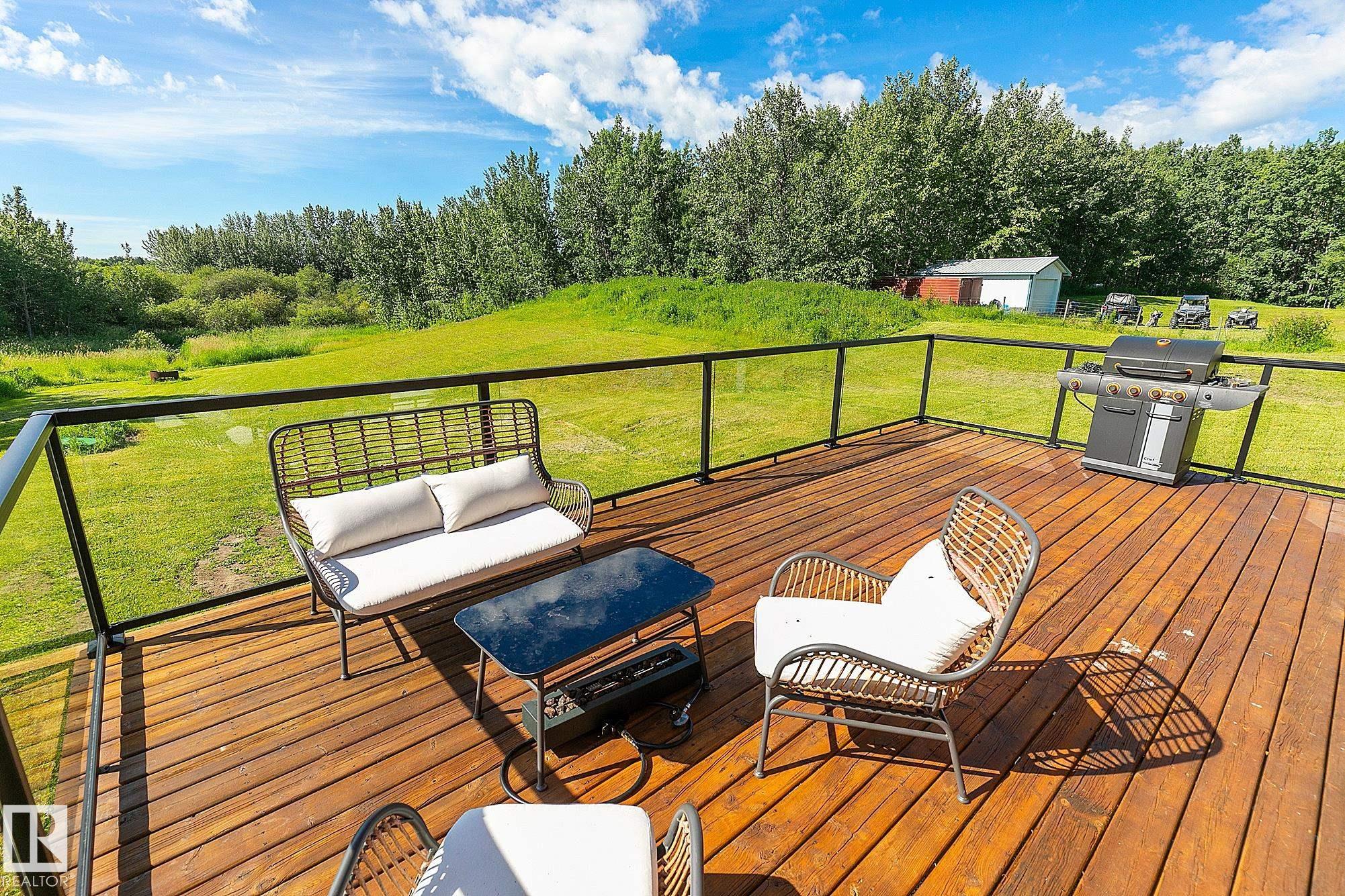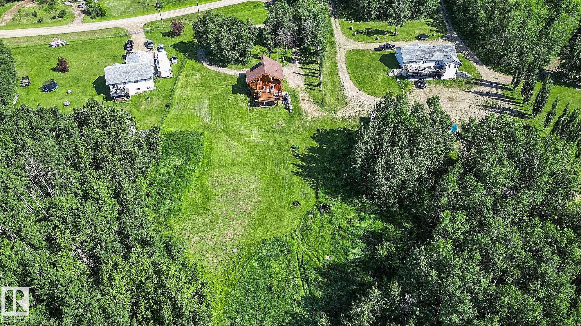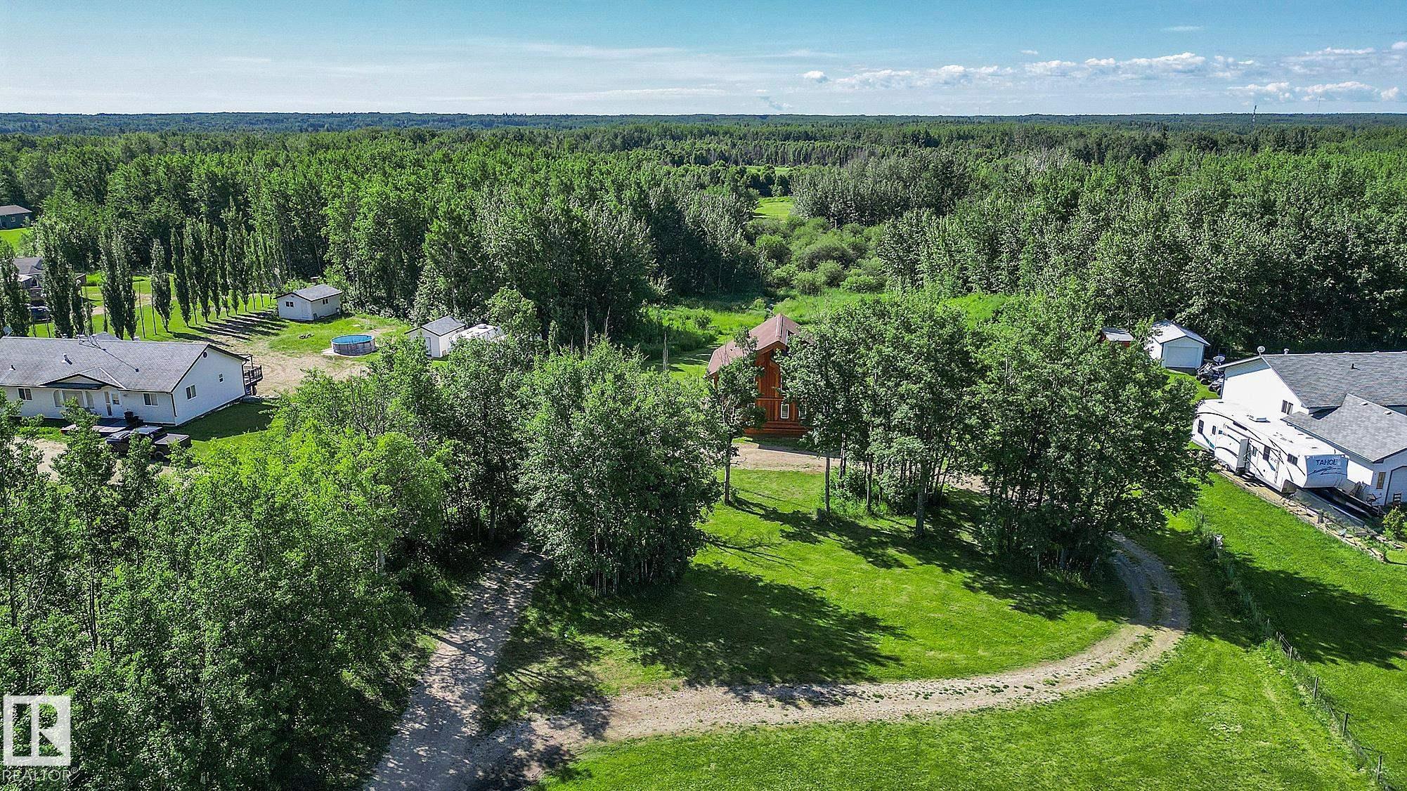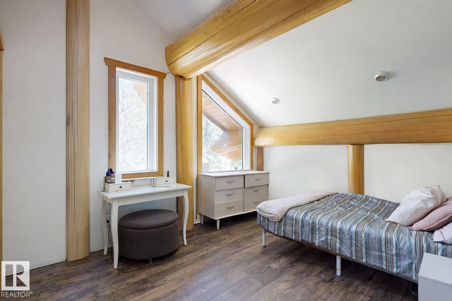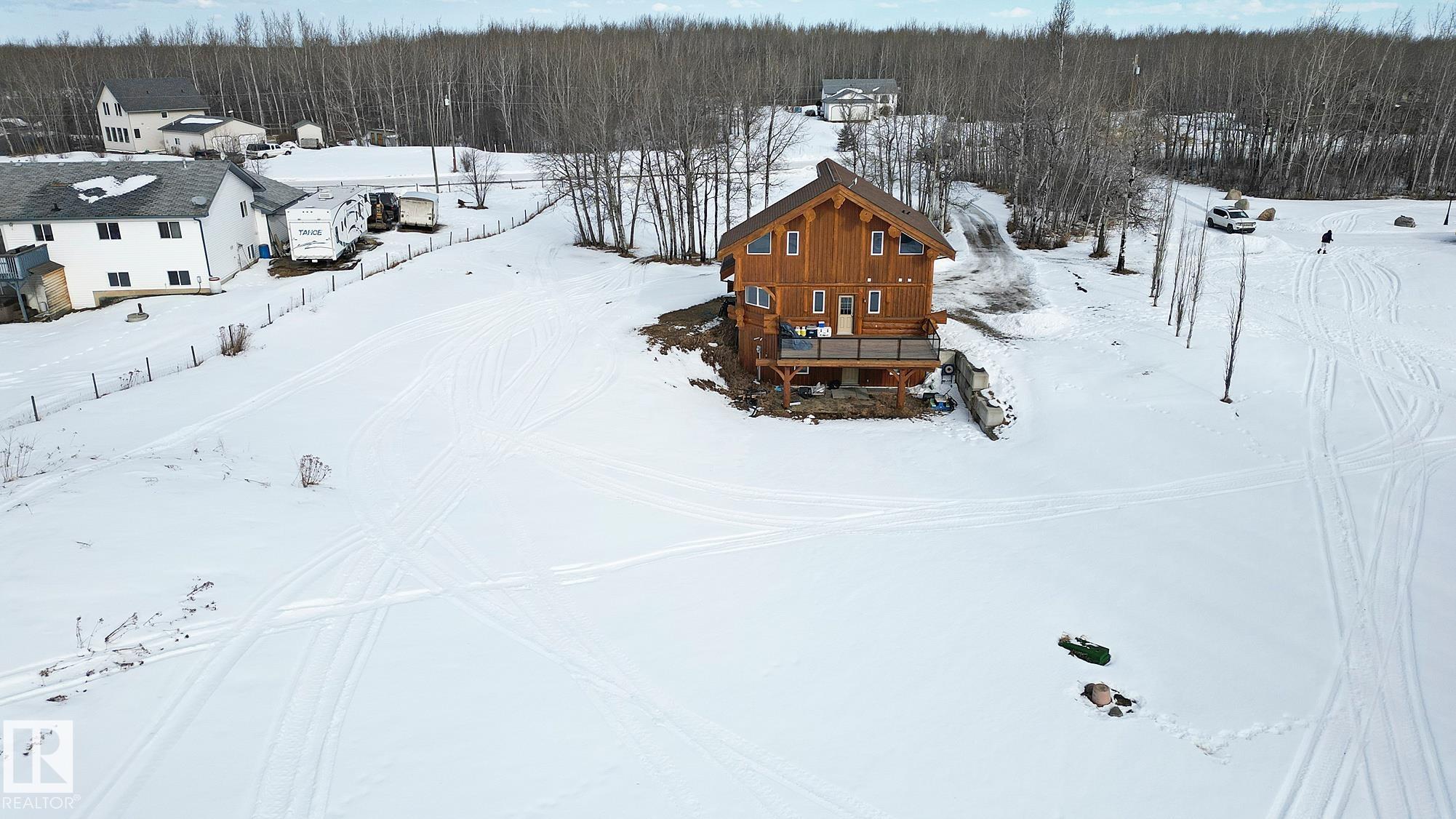 Live the acreage dream! Welcome to this stunning one-of-a-kind log home set on 2.03 acres surrounded by breathtaking views! Filled with character including a beautiful handcrafted log staircase, soaring timber beams & authentic rich wood finishing. Main floor features endless windows, open-to-above space & modern flooring. Charming country-style kitchen offers warm wood cabinetry, updated appliances, ample counter space, & a bright window above the sink. Open-concept living and dining area provides plenty ...