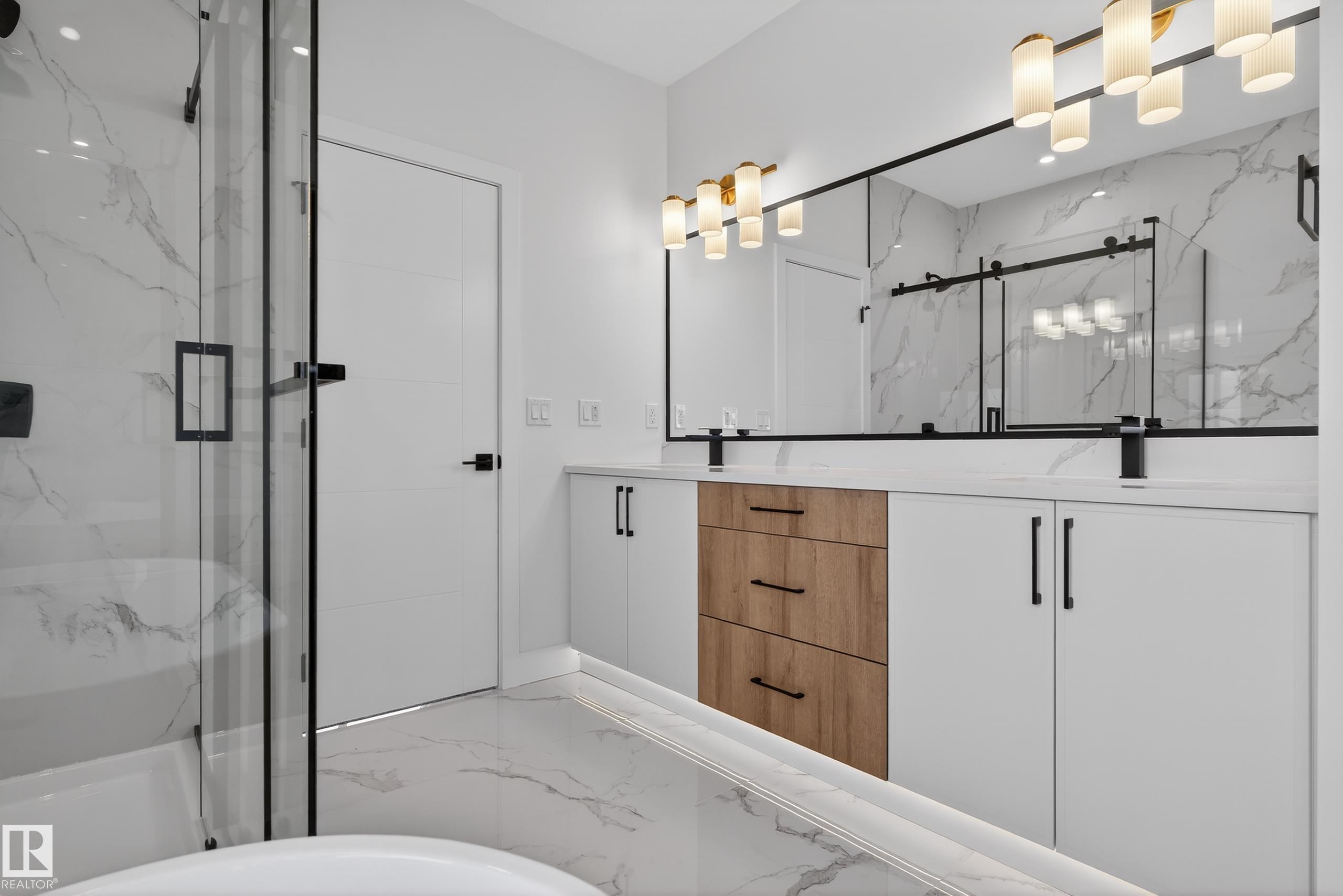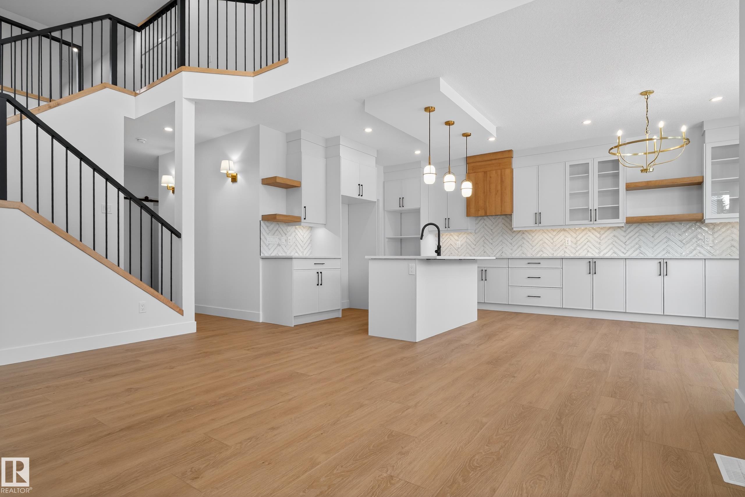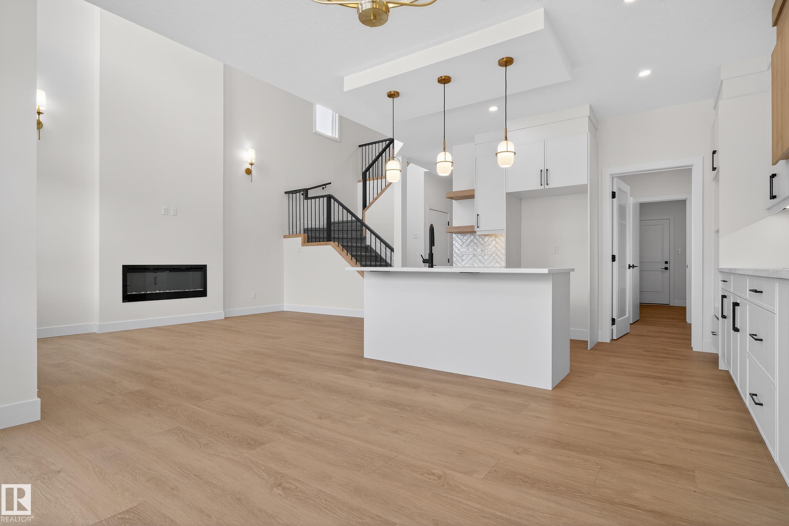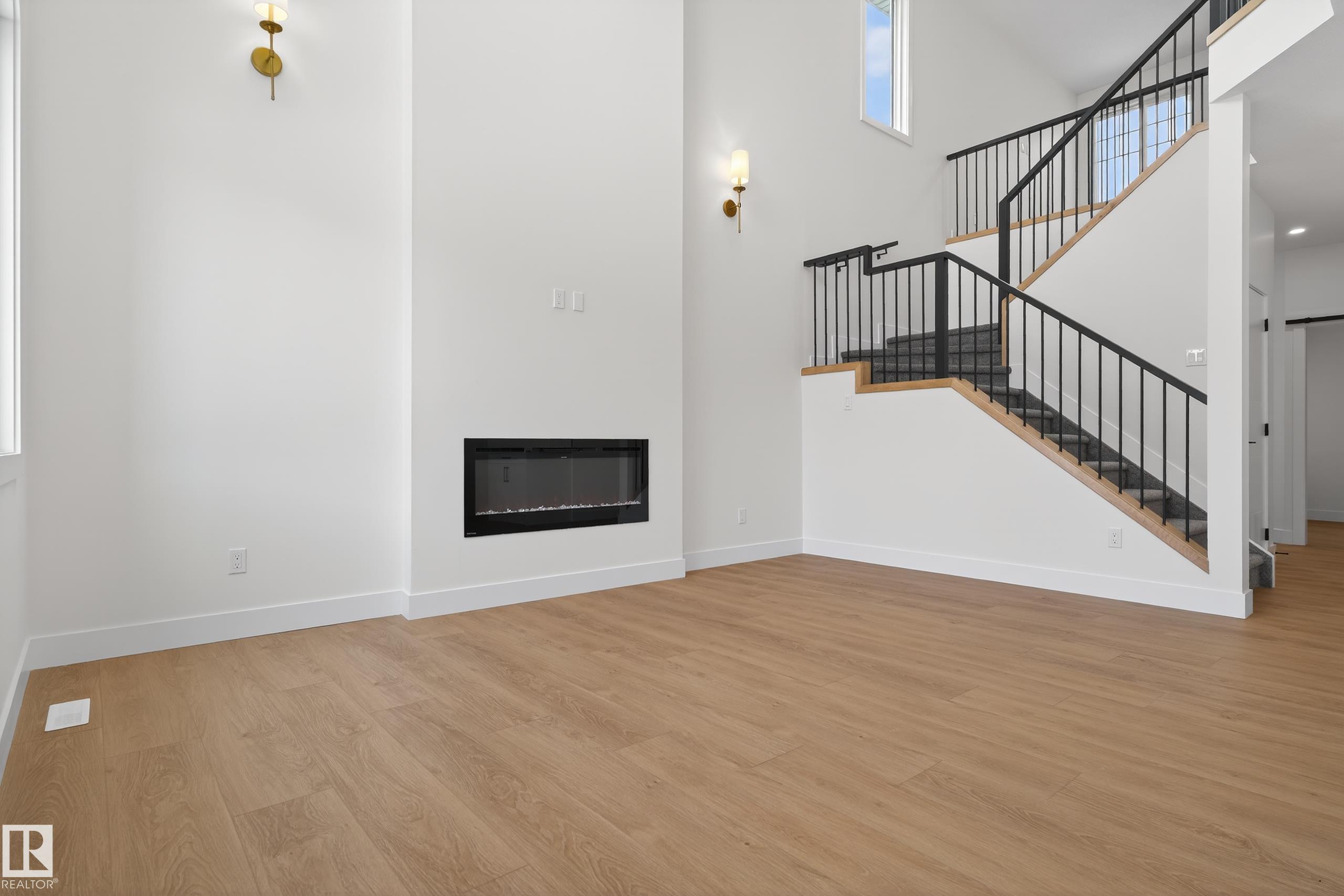 4 BEDROOM house in the heart of Riverside in St. Albert! Ready To Move In....This spacious & elegant home offers 4 bedrooms upstairs plus a full main floor bedroom & 4PC bathroom perfect for guests or multigenerational living. The grand great room features soaring 19’ ceilings, oversized triple pane windows, & a striking floor to ceiling porcelain tile fireplace with oak paneling. Premium builder finishings include luxury vinyl plank flooring, quartz countertops, upgraded lighting, & extra pot lights. The c...