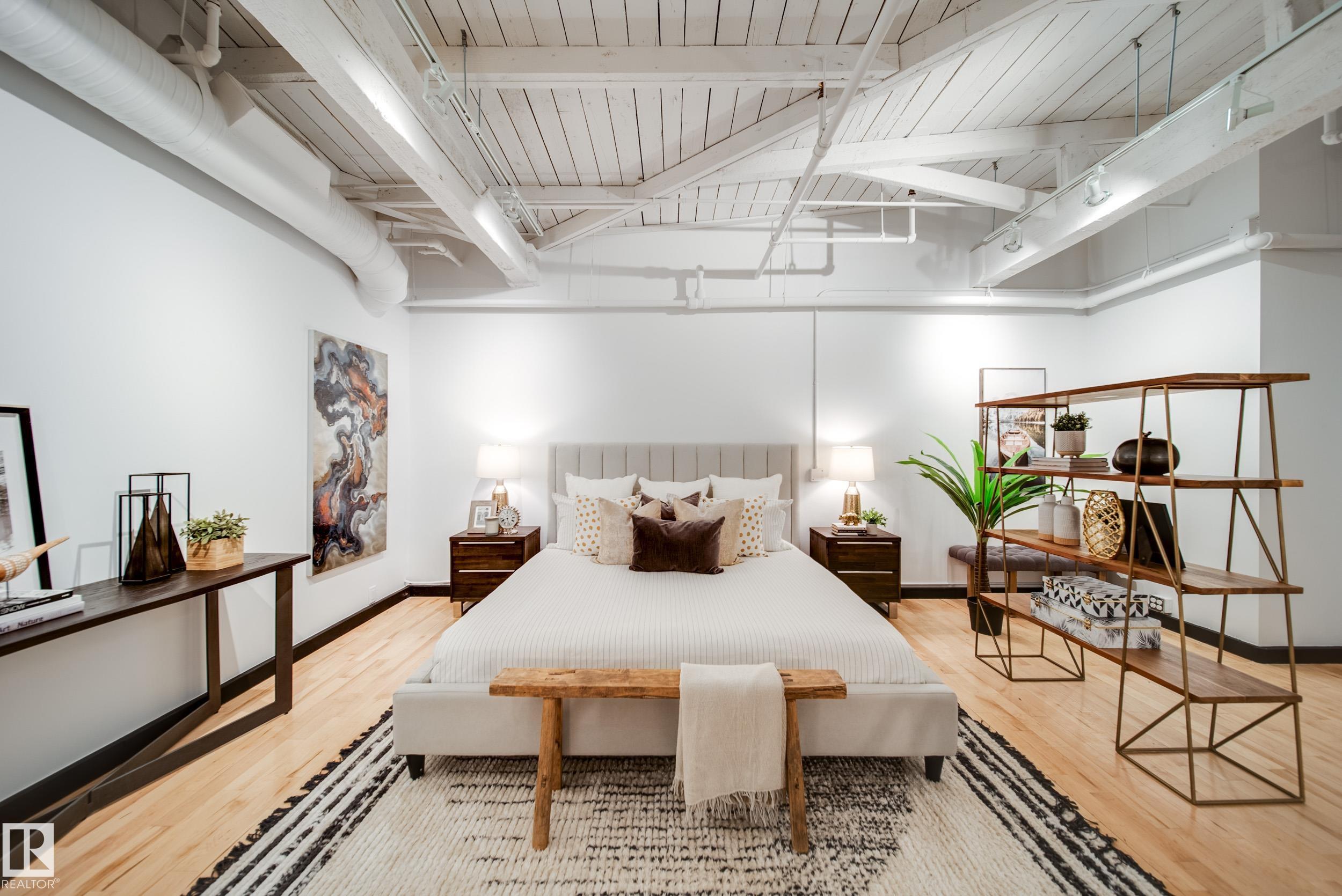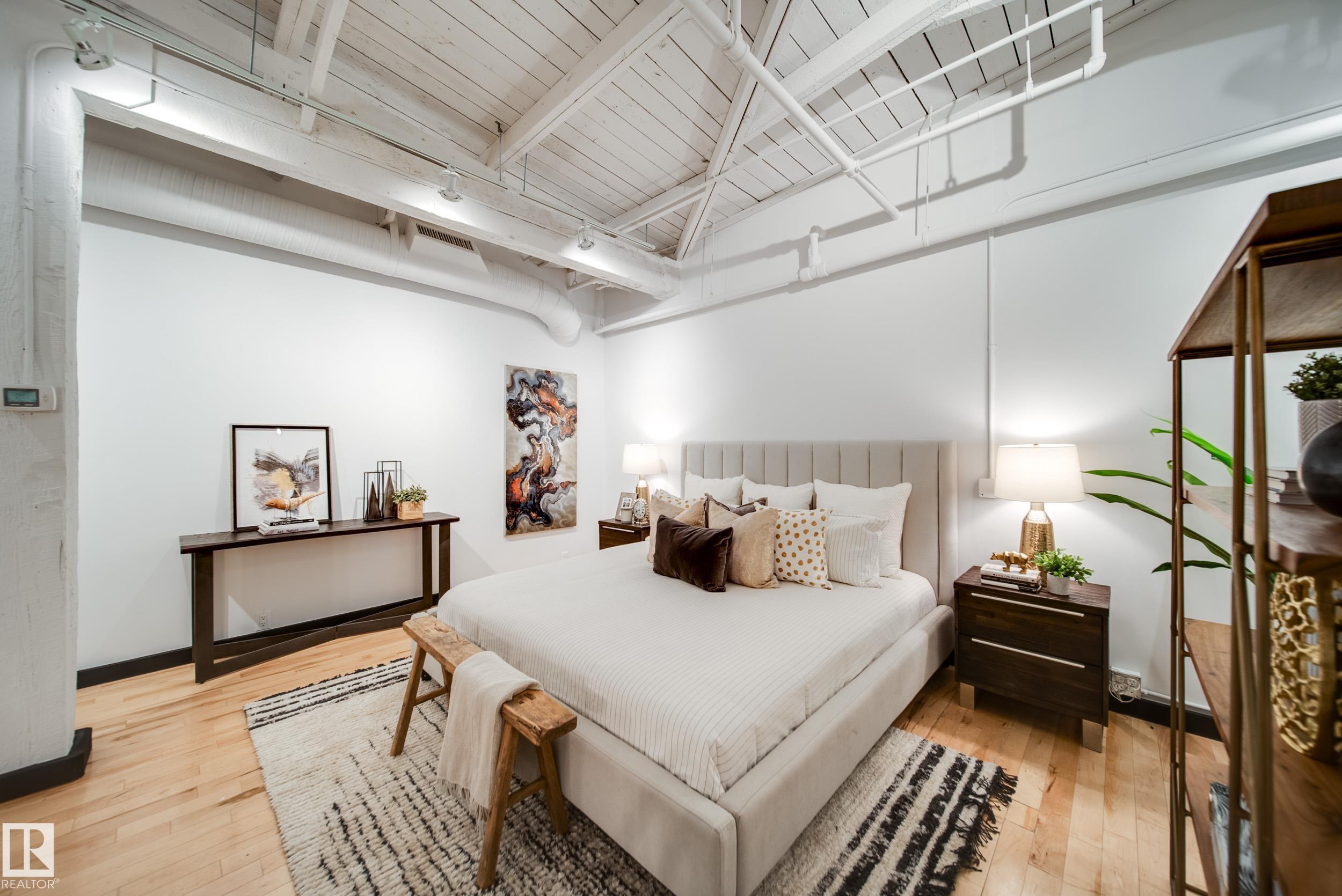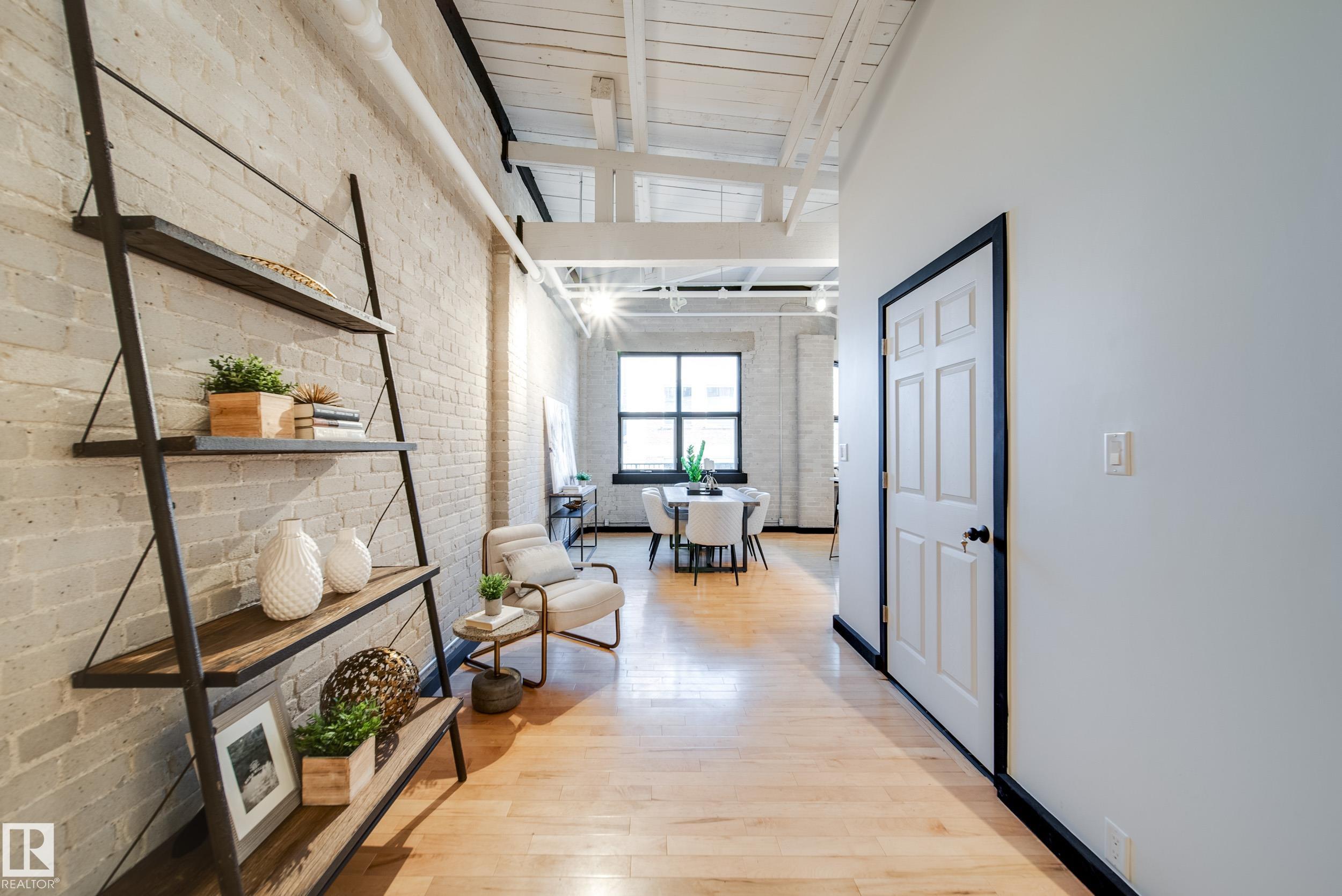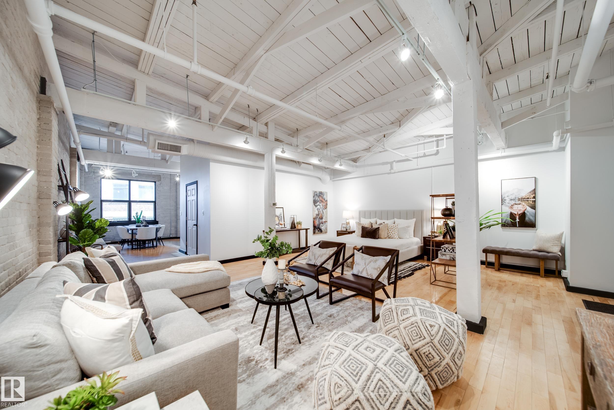 PHILLIPS LOFTS, EDMONTON’S PREMIER LOFT BUILDING, PRESENTS ONE OF THE FINEST UNITS TO HIT THE MARKET! This New York-style loft, steeped in history, is located in the heart of the warehouse district—ideal for those seeking an urban lifestyle with walkability, entertainment, restaurants, and just steps to Rogers Place. Situated on the top floor, this fully renovated unit boasts 13' ceilings and original beams that are over 100 years old. Every inch of this space has been updated with high-quality renovations,...