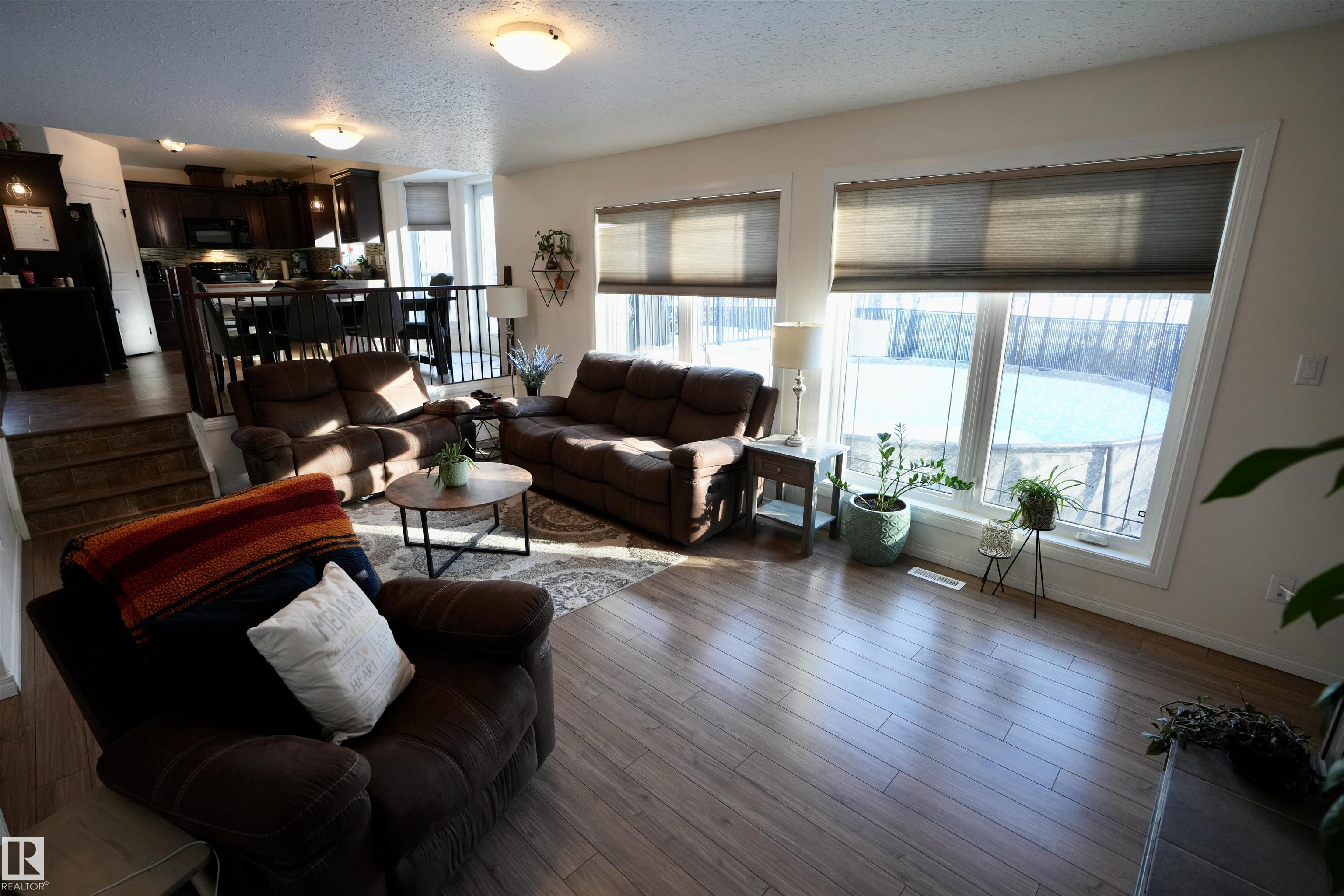 CUSTOM BUILT HOME BACKING ONTO THE GOLF COURSE! Nestled in a peaceful cul-de-sac, this stunning 4-level split offers an attached heated double garage and modern design throughout. The spacious foyer welcomes you into a bright, open-concept main floor featuring durable vinyl and lino flooring. The large living room flows seamlessly into the dining area and a kitchen with rich dark cabinetry. The bright lower level boasts a cozy family room with large windows, a laundry room, and a home office. Upstairs, the ...