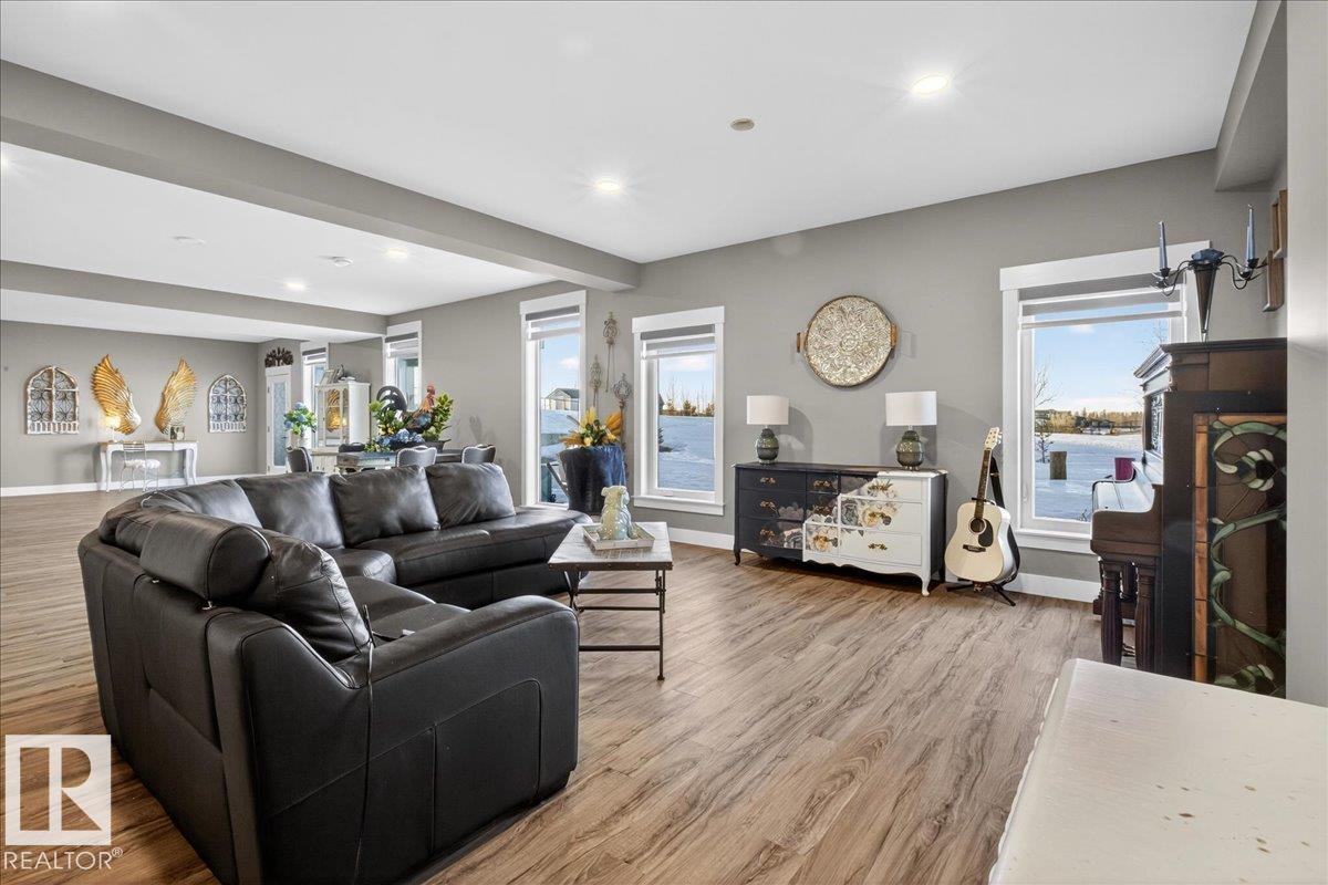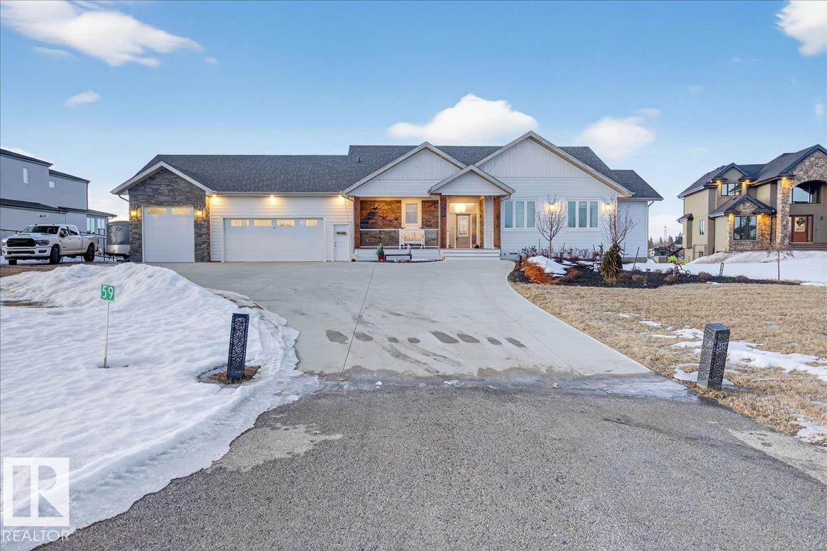 Welcome to this exceptional custom built bungalow in prestigious Spring Meadow Estate, where peaceful acreage living meets city convenience. Occupied in 2021, this stunning one acre property offers full city utilities and is just 8 minutes from Edmonton. The impressive extended driveway leads to an oversized triple heated garage with an extra-tall door perfect for RVs, boats, and all your toys. Inside, no detail was spared. Soaring 10-foot ceilings and a bright open concept design create an inviting yet gr...