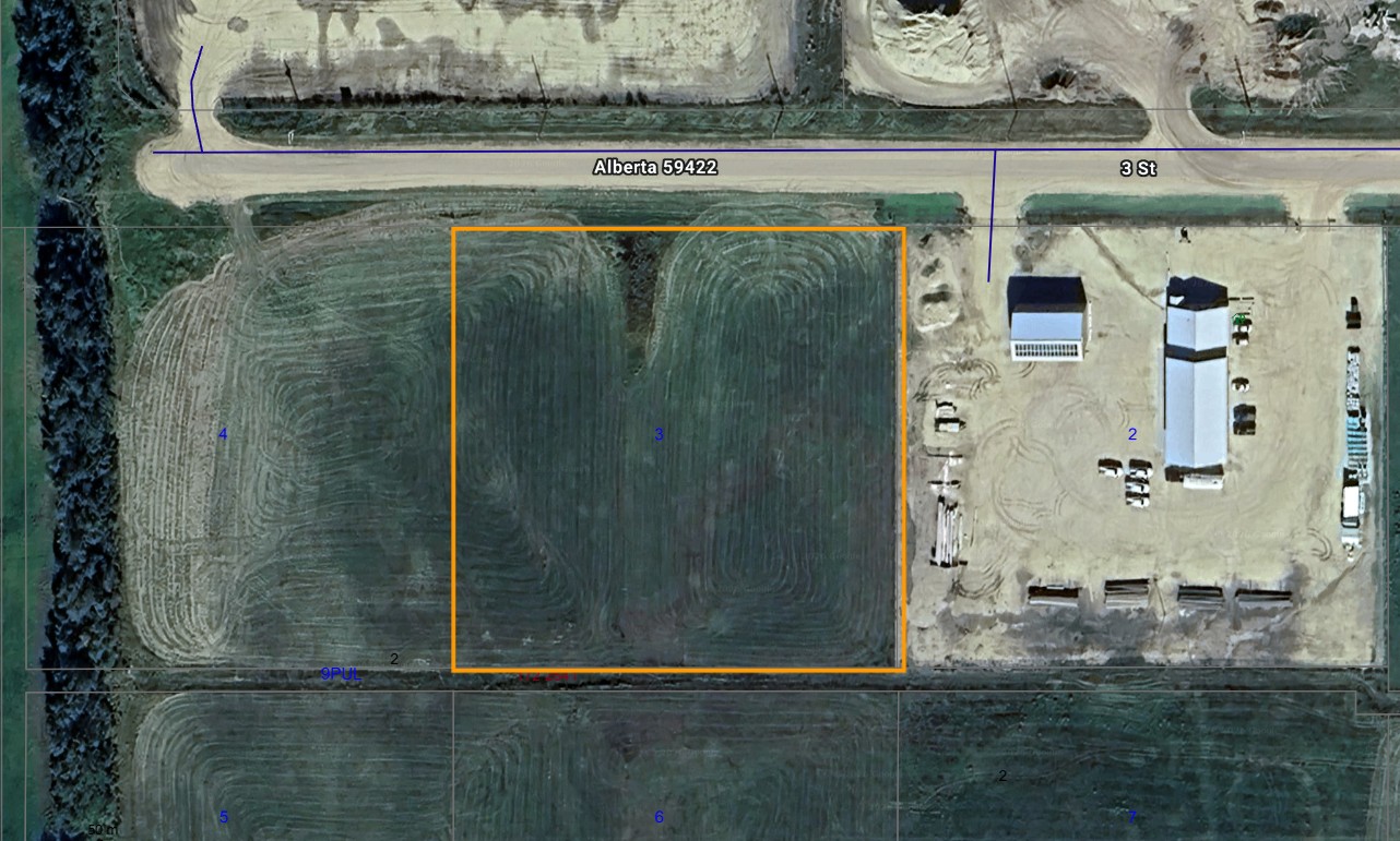 3.19 Acres of property in the North Sky Business Park. Partially serviced industrial lot ready for you to build on. Each lot requires septic tanks that will eventually be hooked up to a low pressure sanitary system (sewer line is at the property line). Waterline is at the edge of the property. Natural gas lines are into the subdivision. 3 Phase Power is available. 45 minutes from west Edmonton.