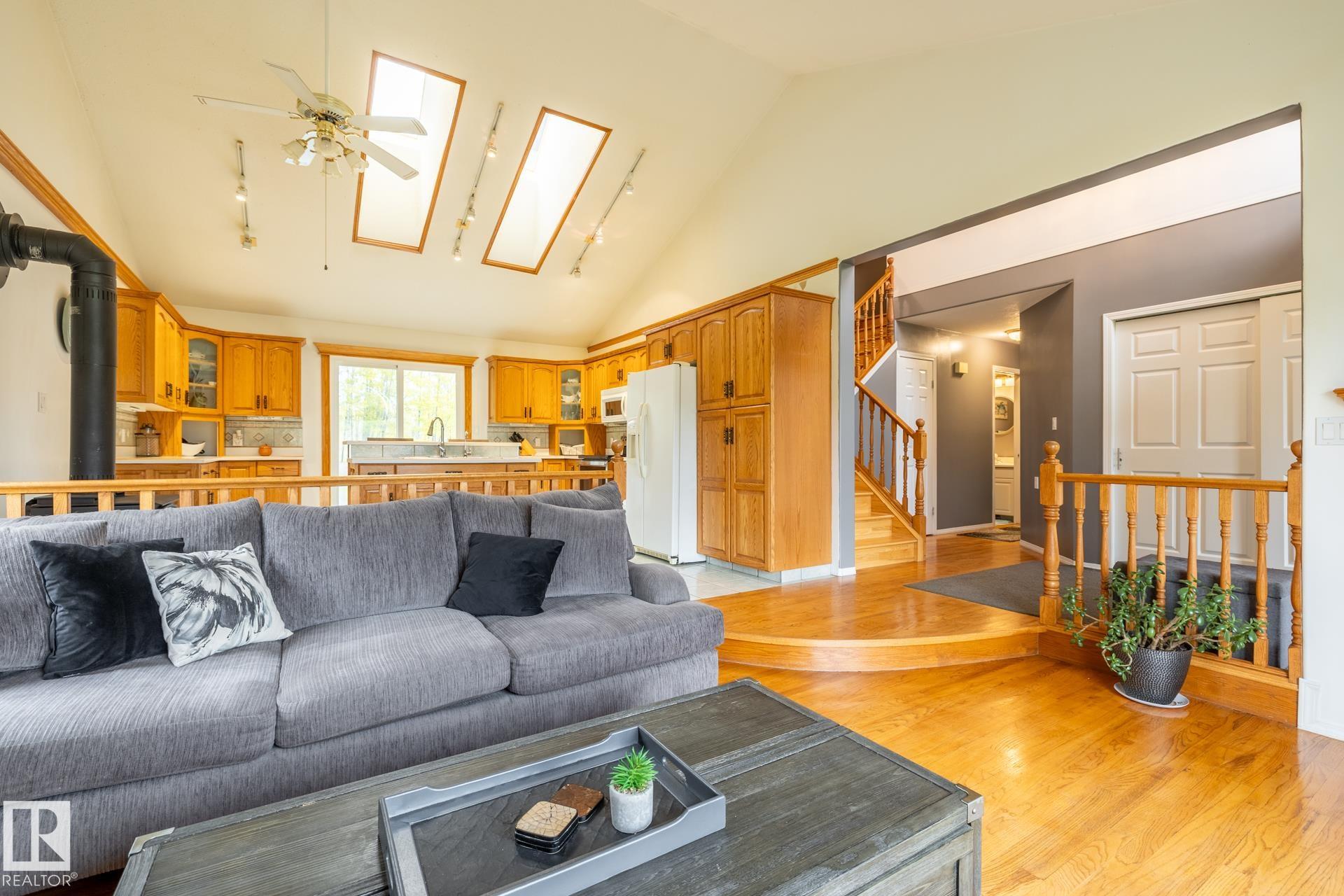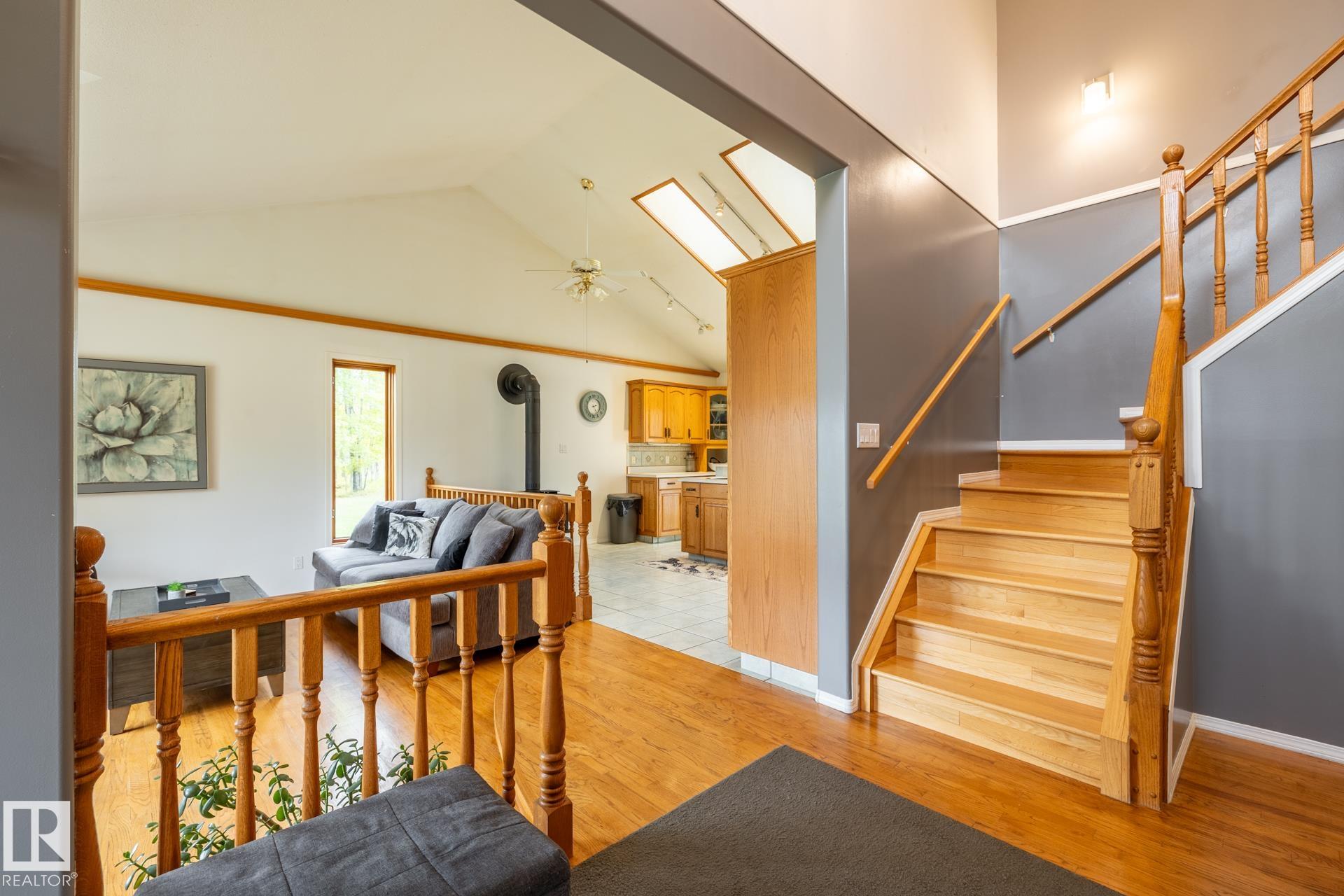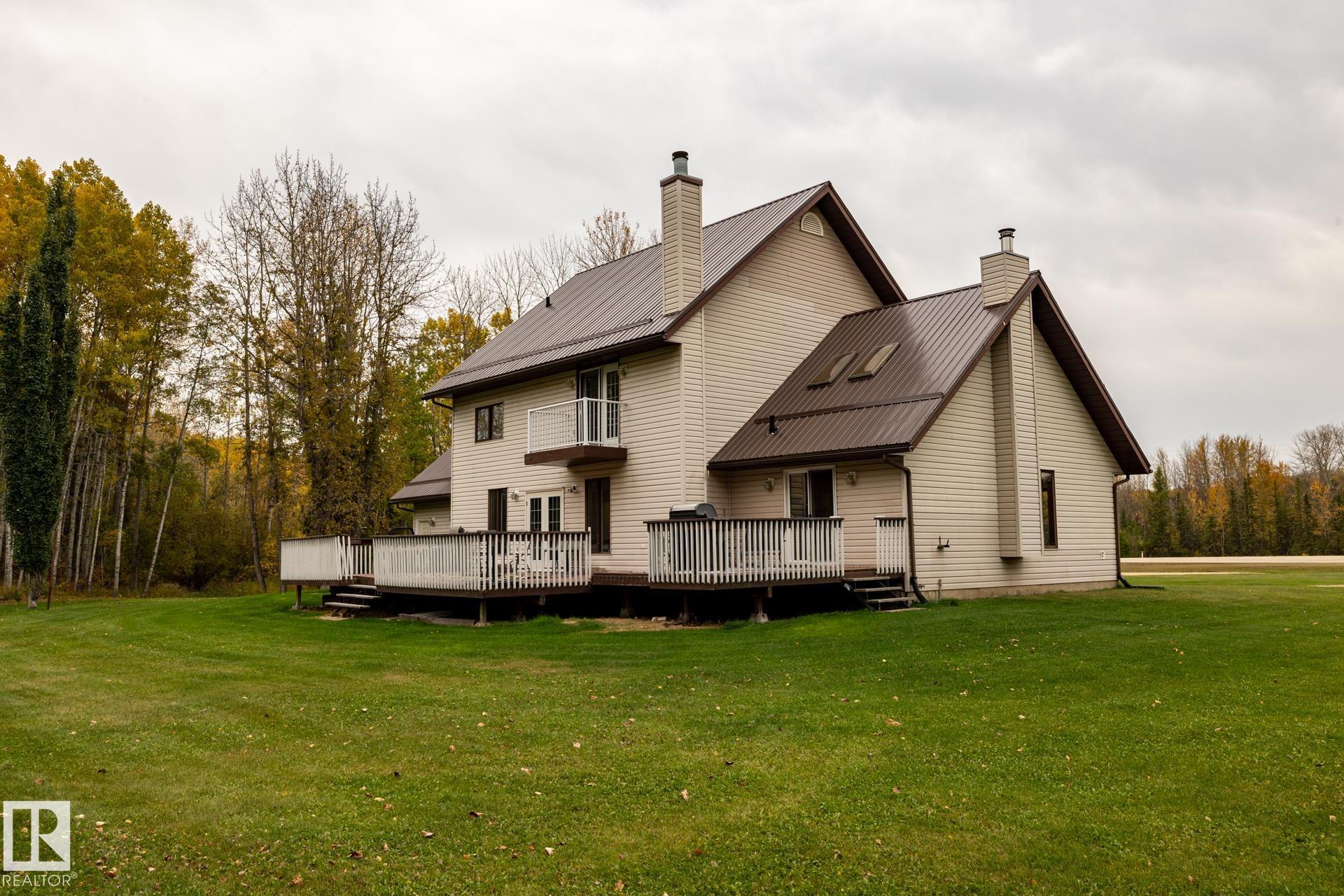 Clean and tidy 17 acres right off pavement, just 5 km from Fort Assiniboine! The 2700+ sq.ft. Cape Cod style home is designed for comfort and space. Stay cozy with your choice of 2 natural gas fireplaces, 1 wood fireplace and 1 wood stove. The main floor is bright and open with a kitchen and sunken dining area (currently used as a living room), a formal dining room, workout space with built-ins, and a sunny den. Step outside to the expansive back deck, perfect for entertaining or relaxing. Upstairs you’ll ...
