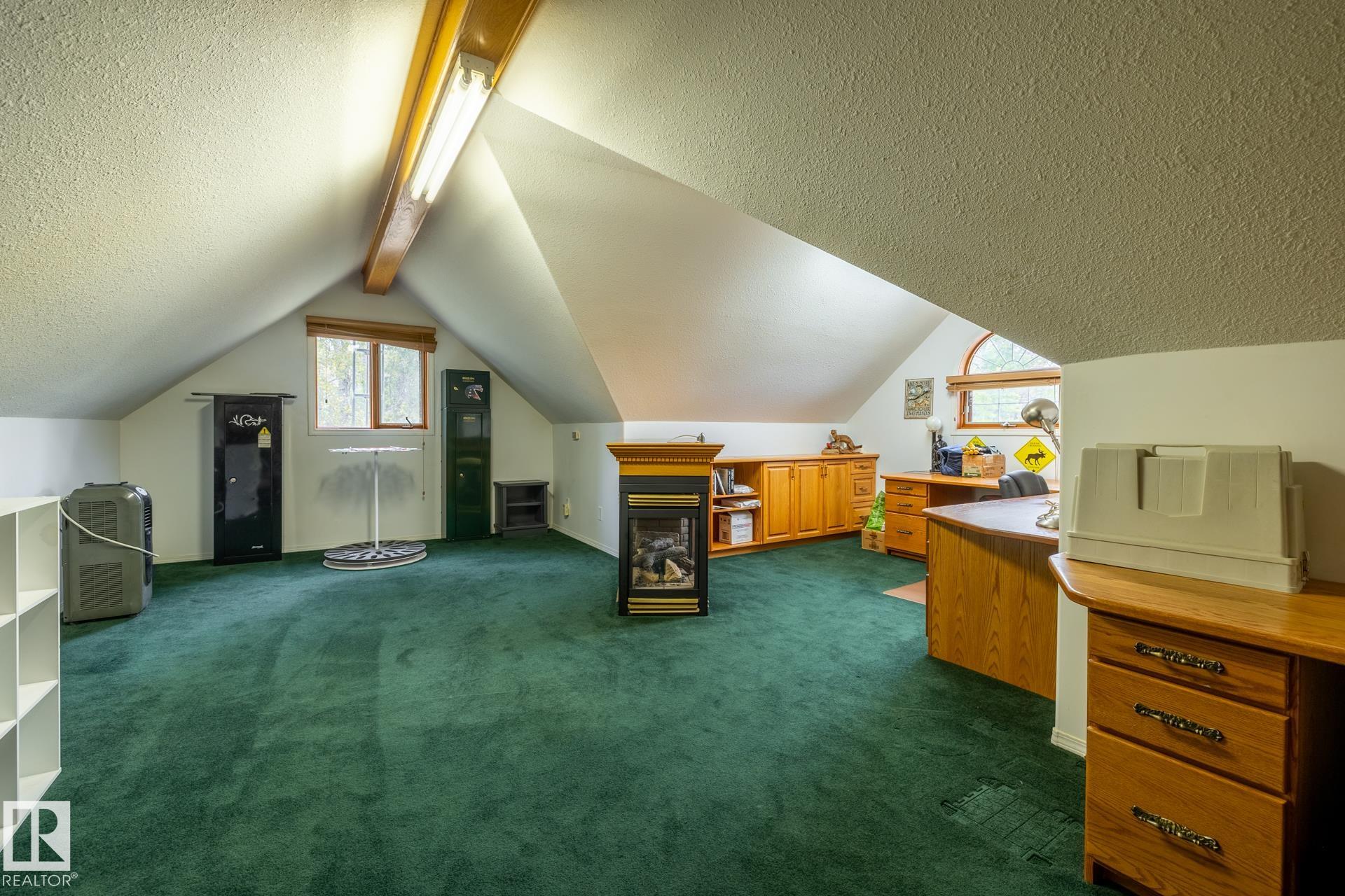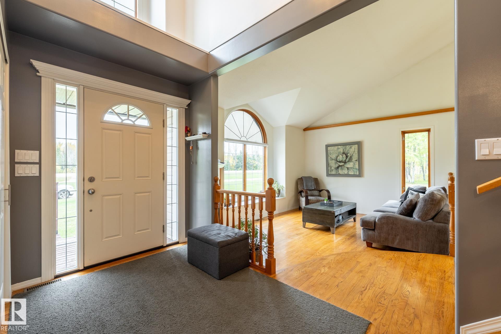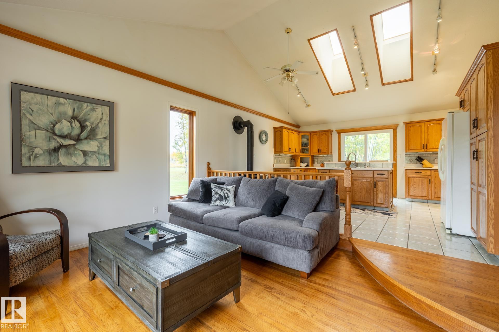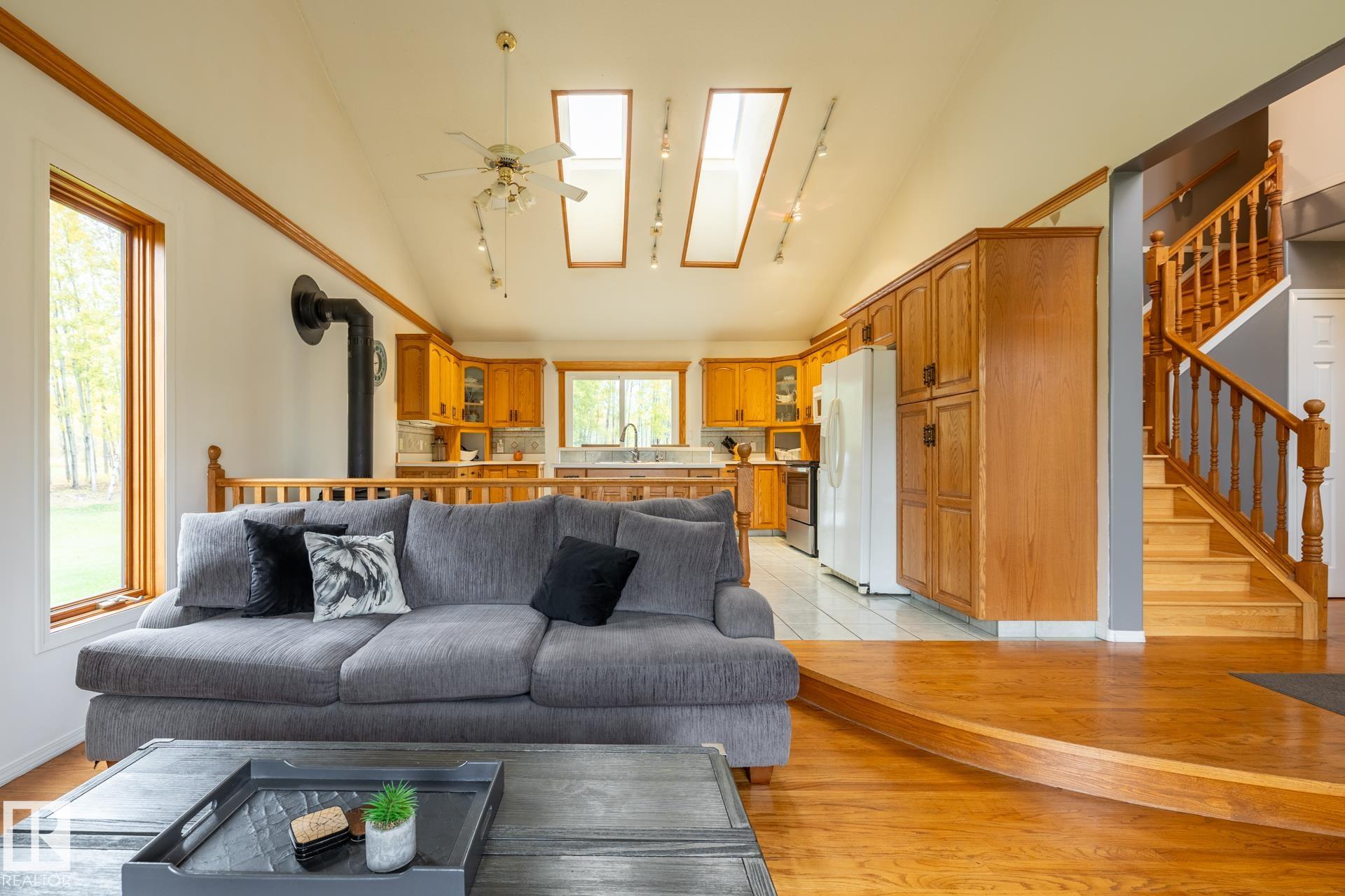 Clean and tidy 17 acres right off pavement, just 5 km from Fort Assiniboine! The 2700+ sq.ft. Cape Cod style home is designed for comfort and space. Stay cozy with your choice of 2 natural gas fireplaces, 1 wood fireplace and 1 wood stove. The main floor is bright and open with a kitchen and sunken dining area (currently used as a living room), a formal dining room, workout space with built-ins, and a sunny den. Step outside to the expansive back deck, perfect for entertaining or relaxing. Upstairs you’ll ...