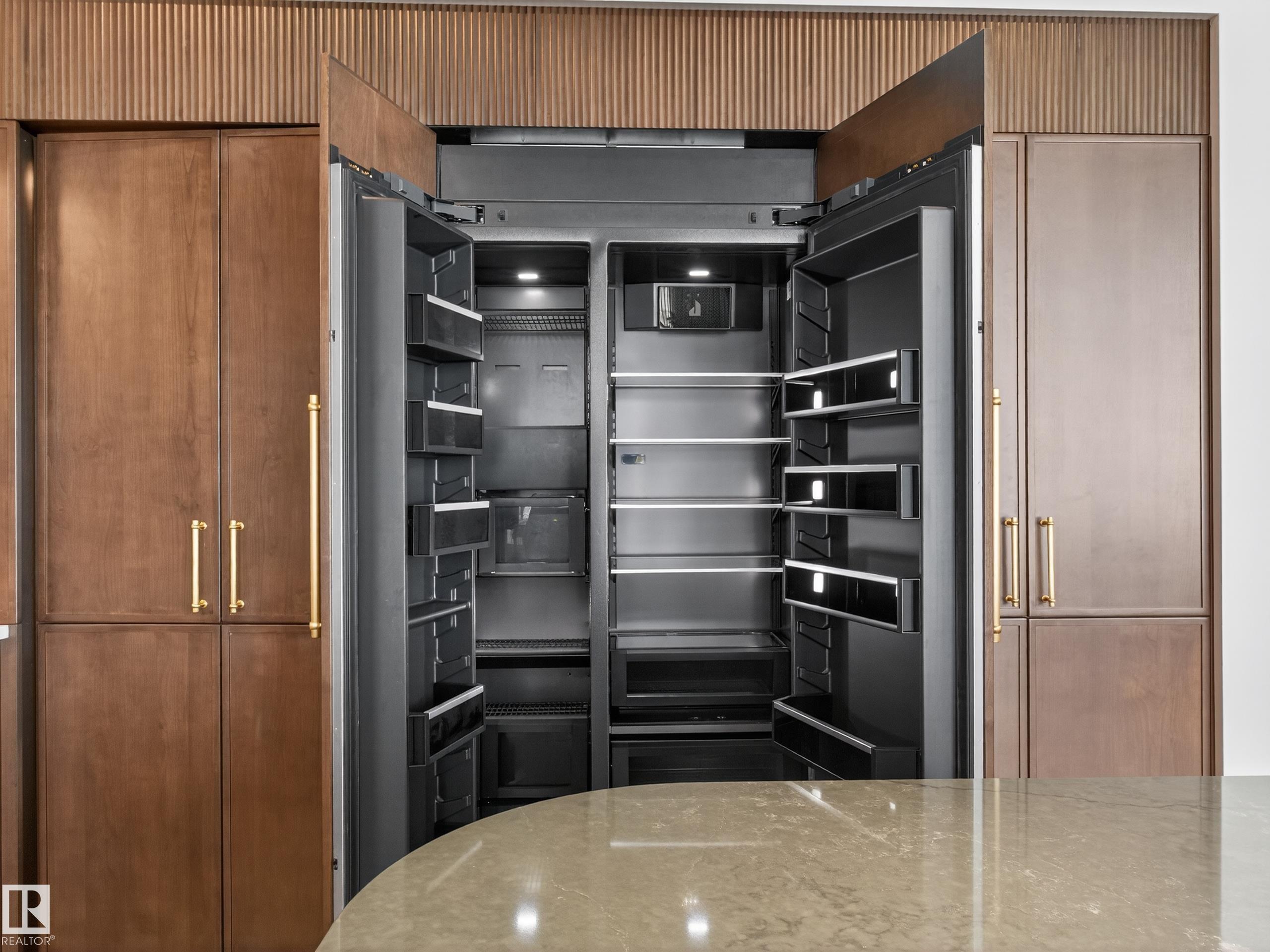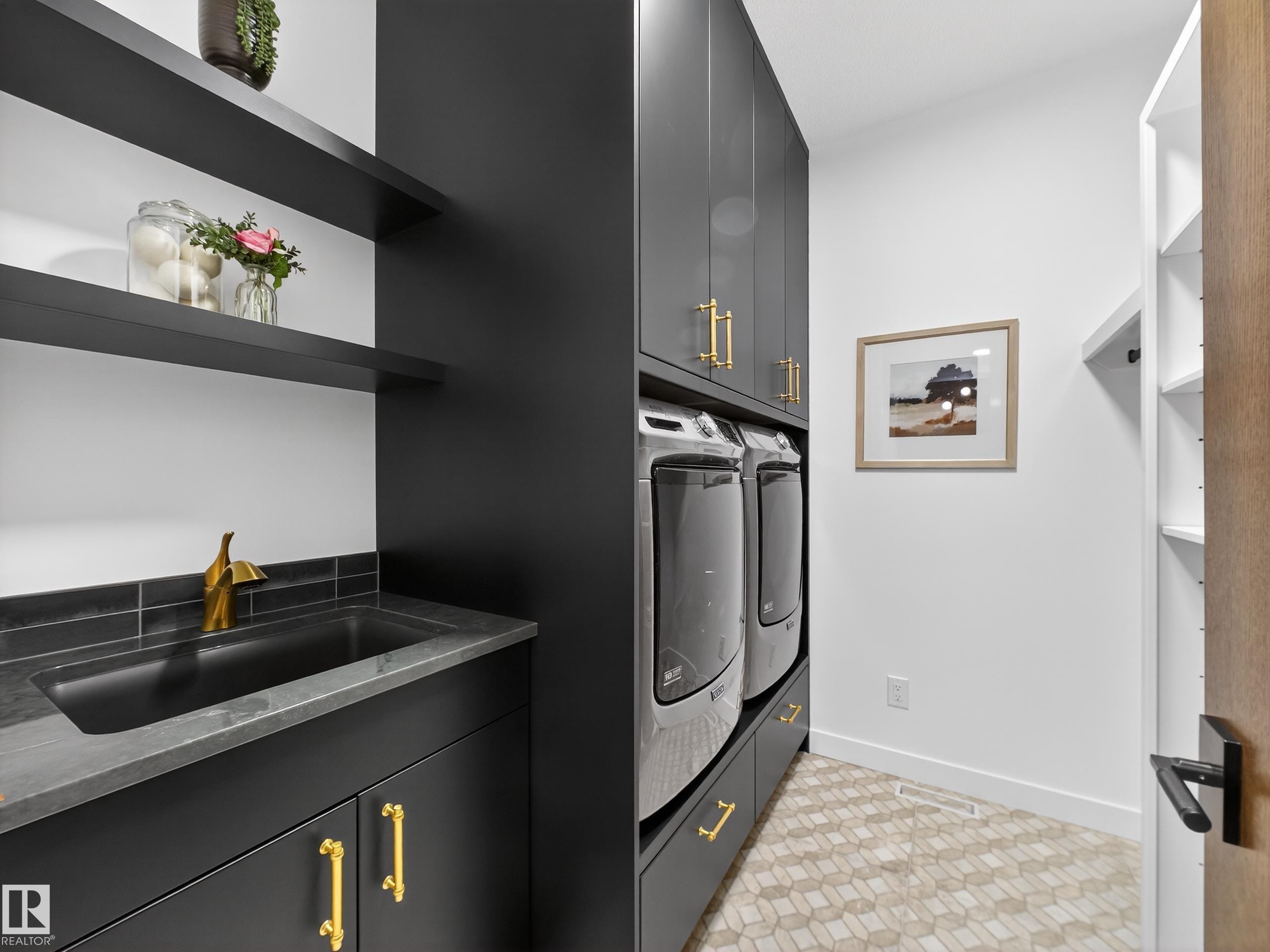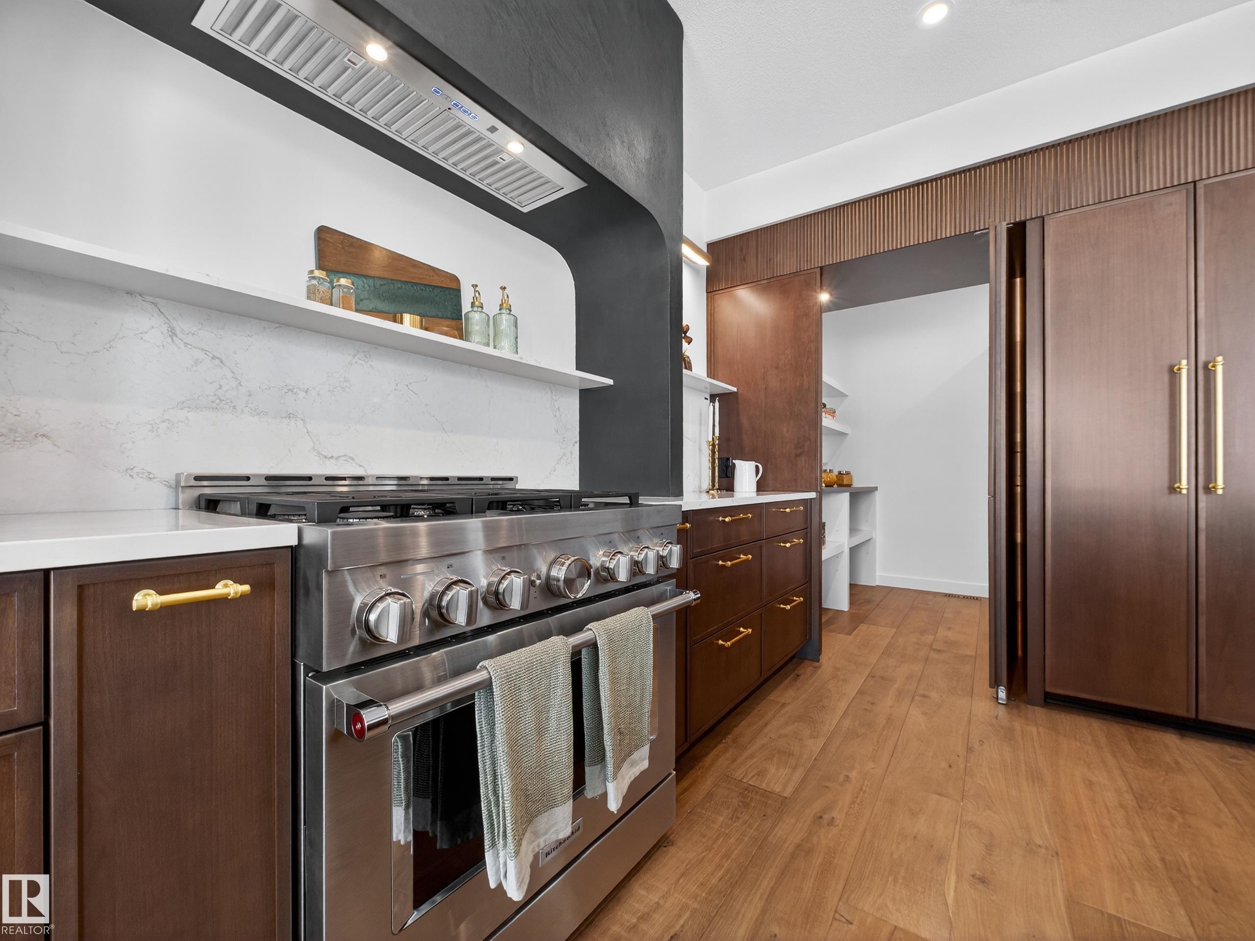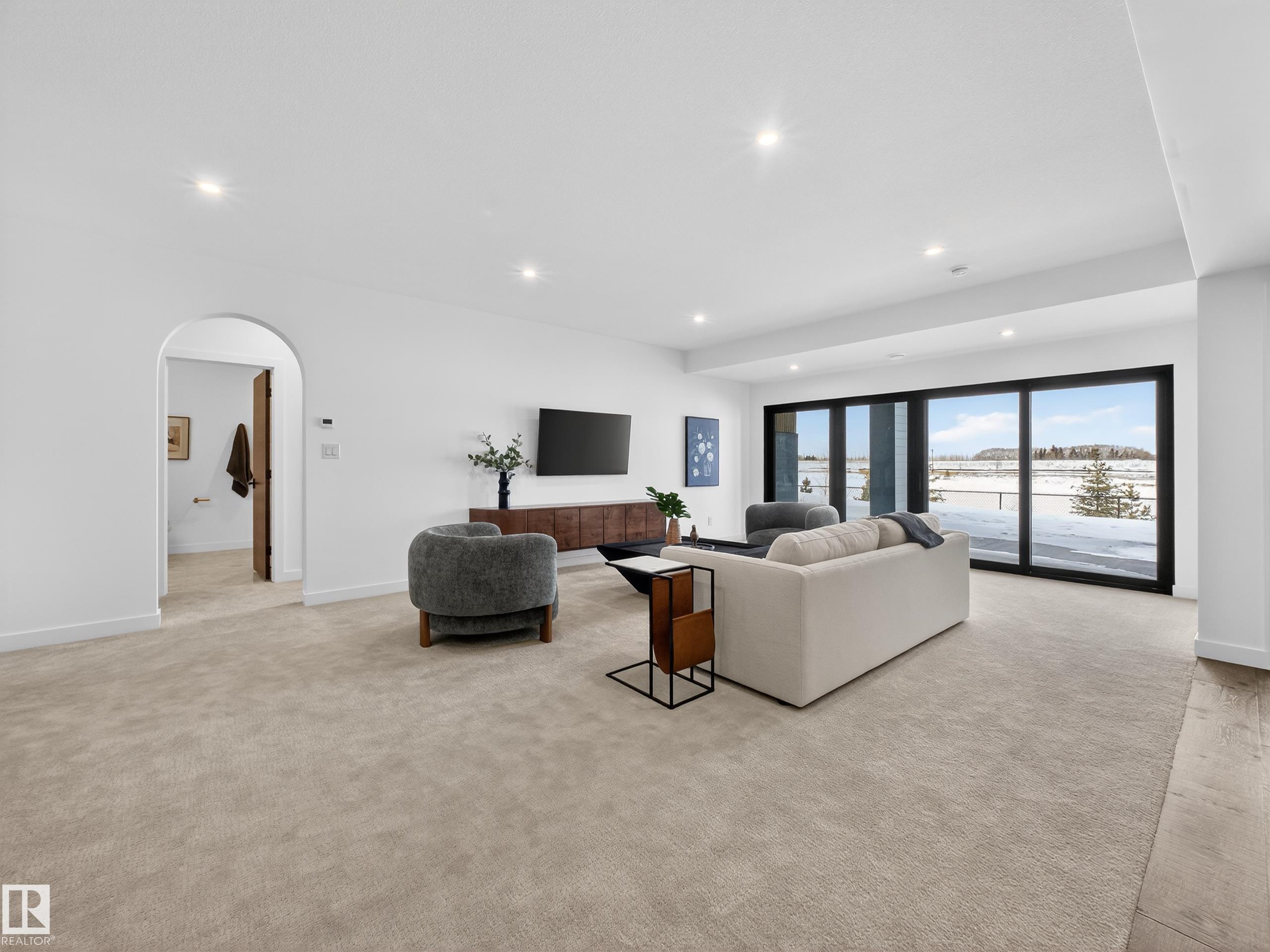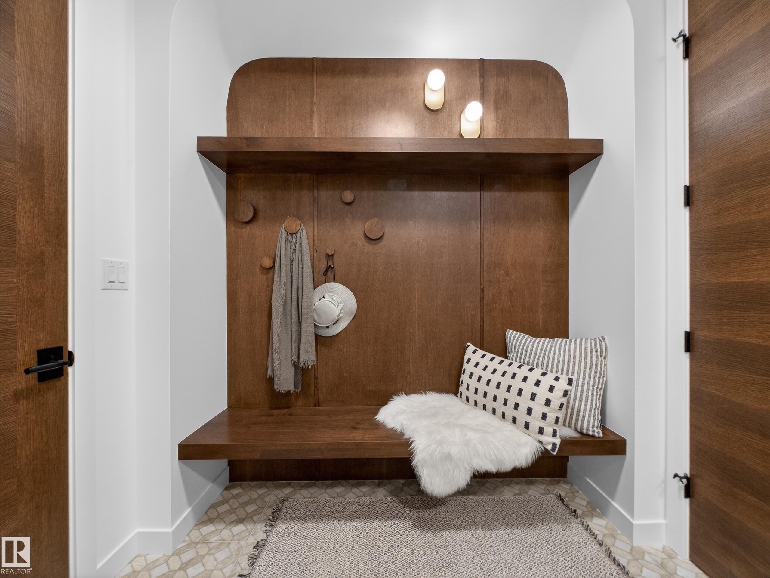 Nestled in a private cul-de-sac in prestigious Élan, this extraordinary 2101 SqFt walkout bungalow backs onto the lake & represents uncompromising craftsmanship by Homes By Sher-Bilt, a boutique luxury builder crafting select custom homes since 1979 with owner Darell Koop personally overseeing every detail. Designed with striking mid-century modern influence, the residence features soaring 13’ ceilings, a dramatic sloped commercial window wall, cedar-clad great room ceiling, and a suspended rotating wood-bu...