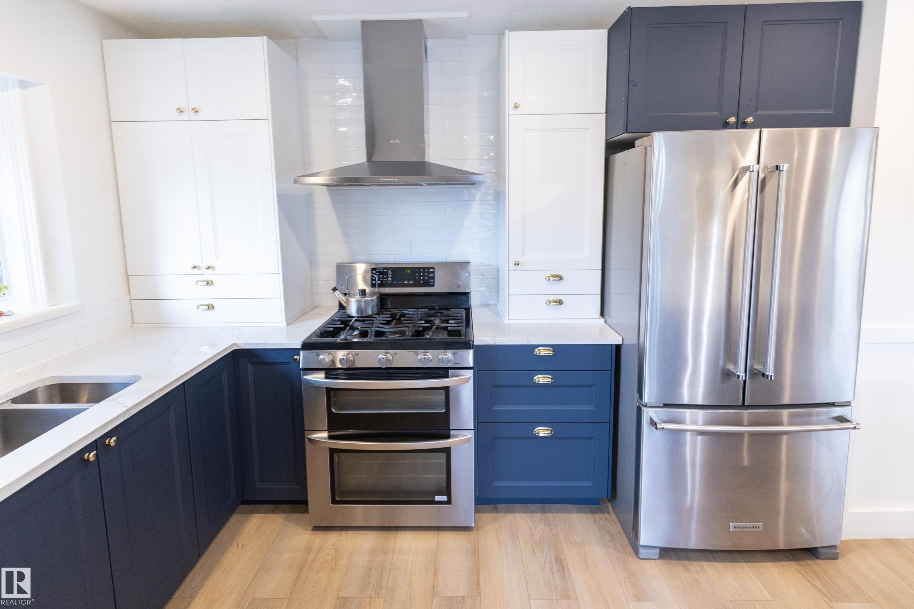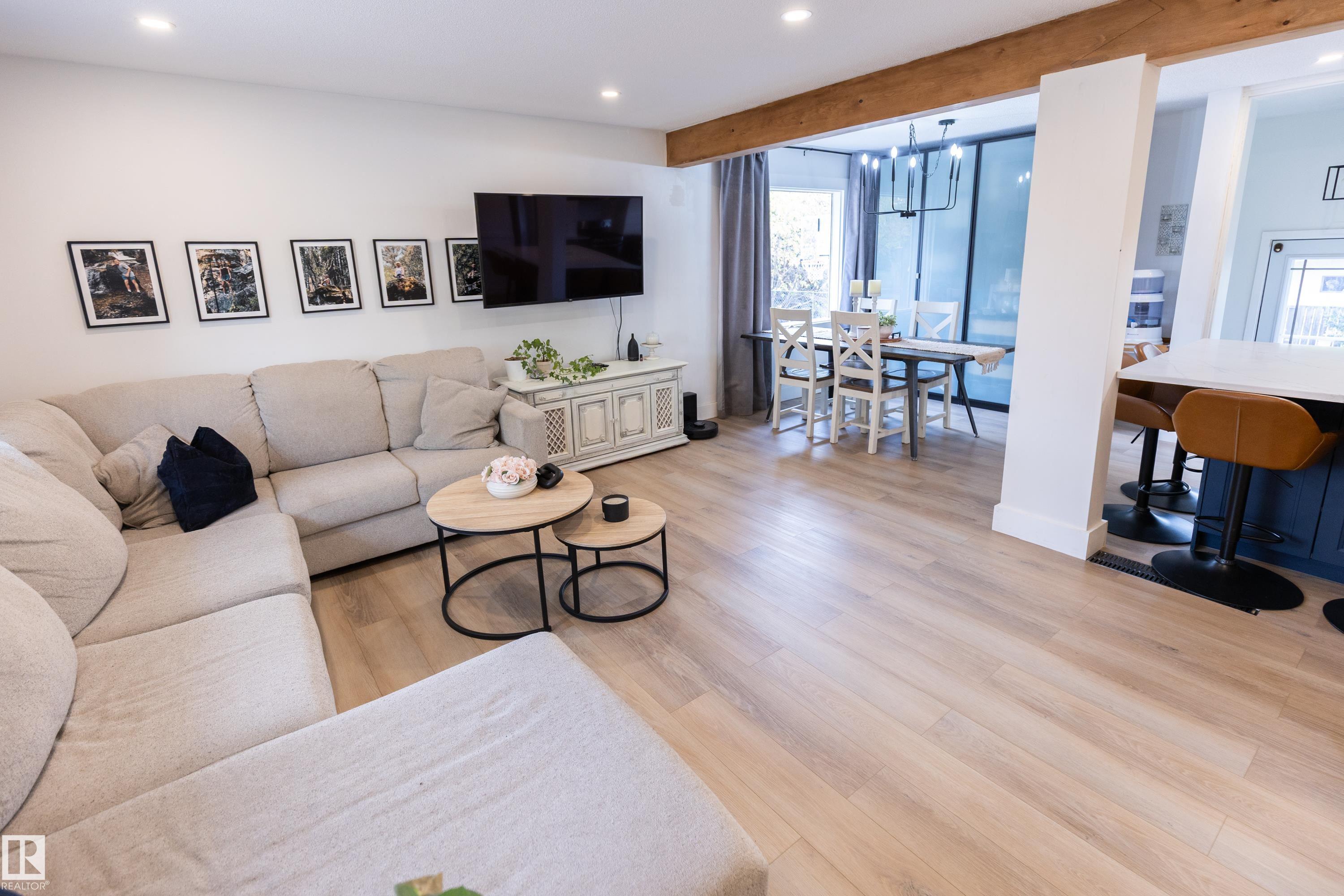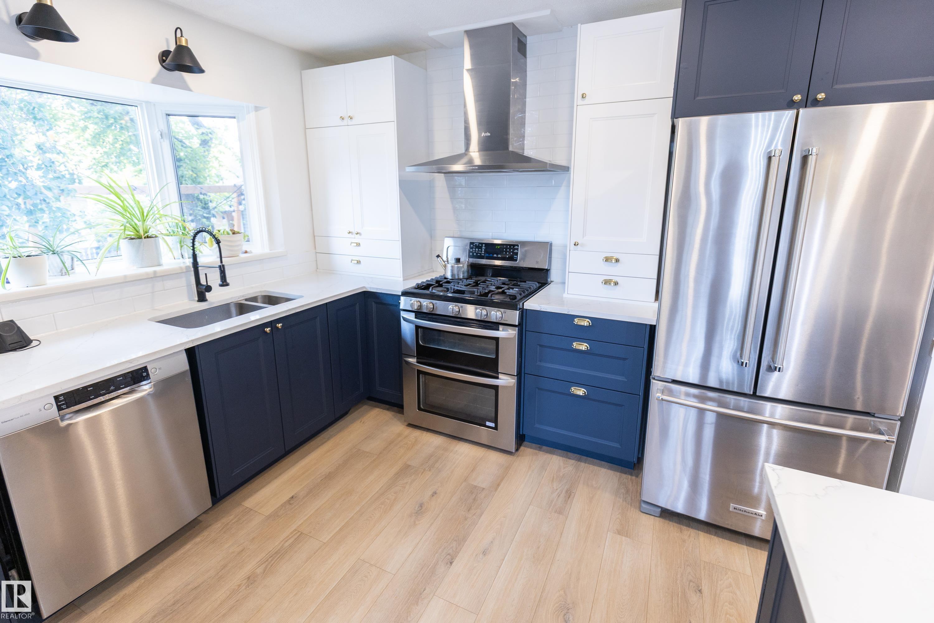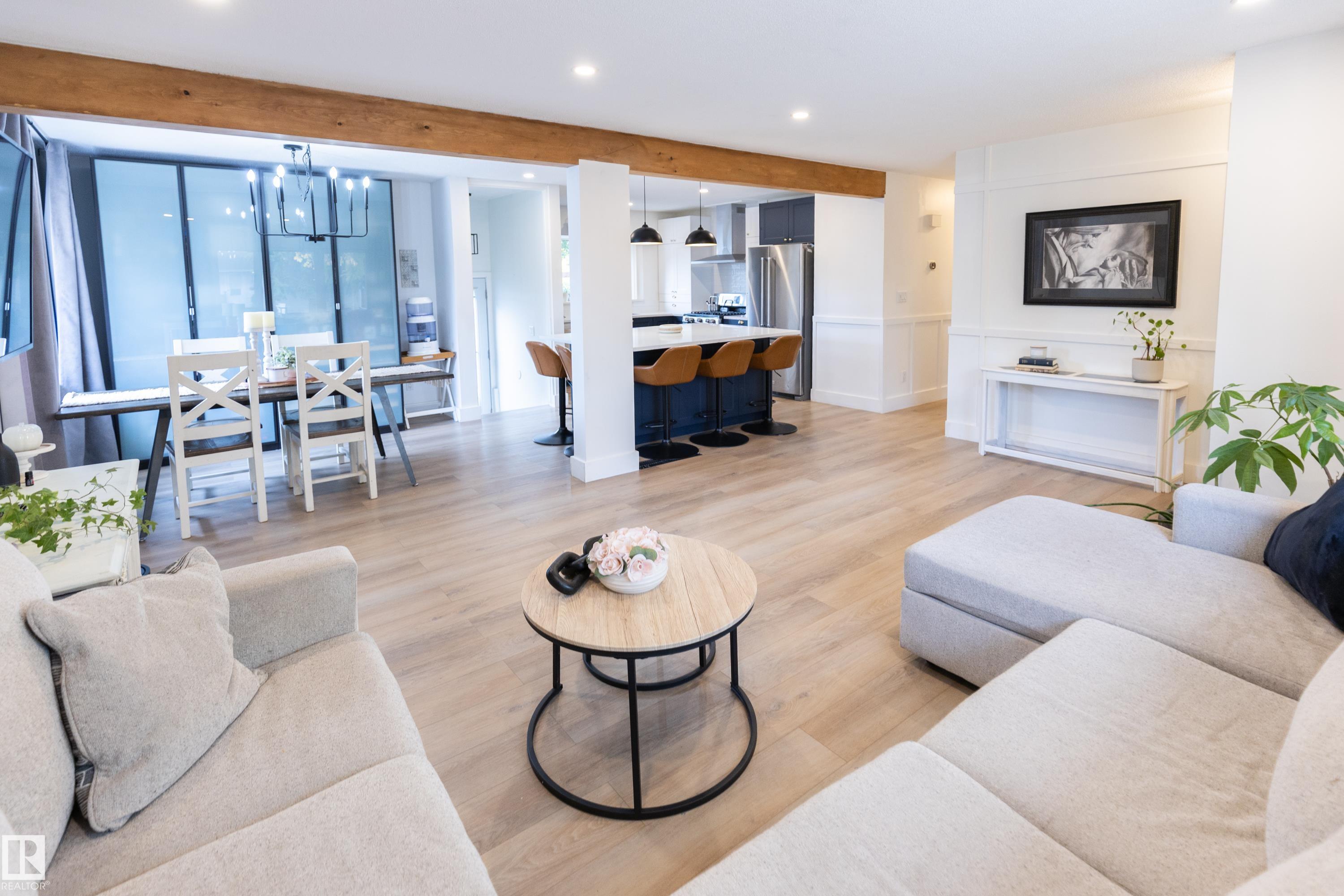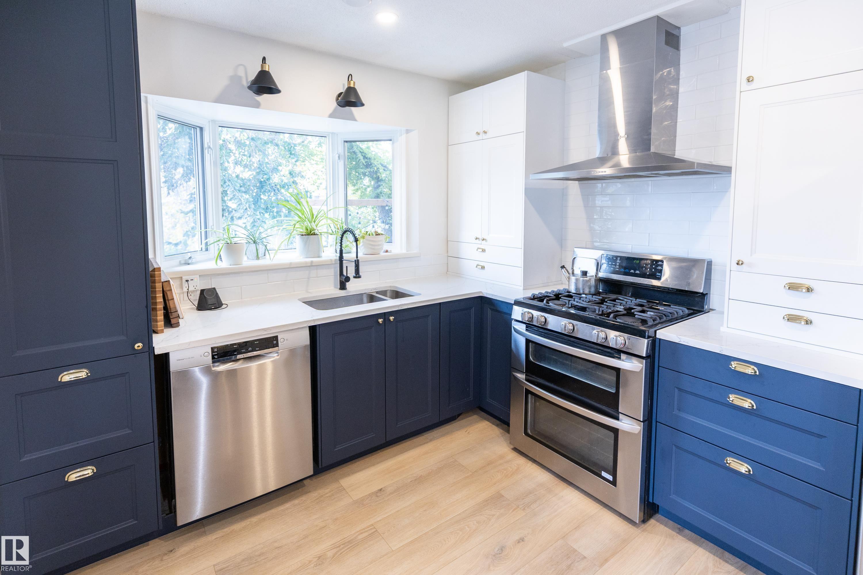 Welcome to this beautifully updated bungalow. The low-maintenance front yard is designed with rock flower beds and walkways that lead to a spacious front entry featuring a built-in seat & feature wood wall. Inside, the bright & open living room offers a large window that floods the space with natural light & showcases new vinyl plank flooring. The stunning, fully renovated kitchen boasts a tile backsplash, quartz counters, stainless steel appliances with gas stove & a huge island seating five that opens to...